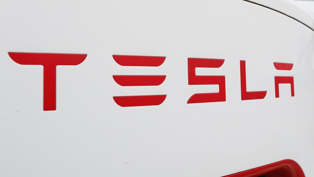 FILE - This Wednesday, March 18, 2020, file photo, shows a Tesla charging station in Port Huron, Mich. (AP Photo/Paul Sancya, File)