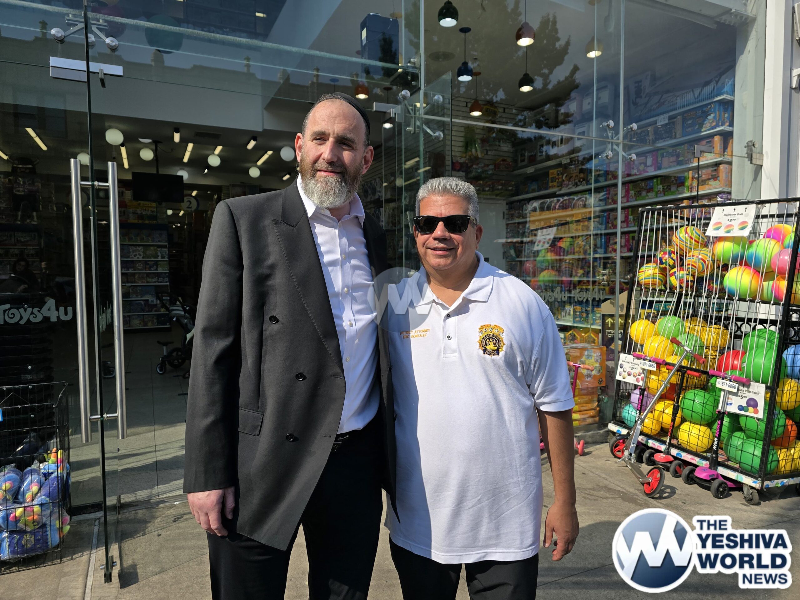 Brooklyn District Attorney Eric Gonzalez visited 13th Avenue in Boro Park on Sunday afternoon ahead of the upcoming yom tov of Sukkos. He was joined by elected officials, community leaders, and members of Boro Park Shomrim.