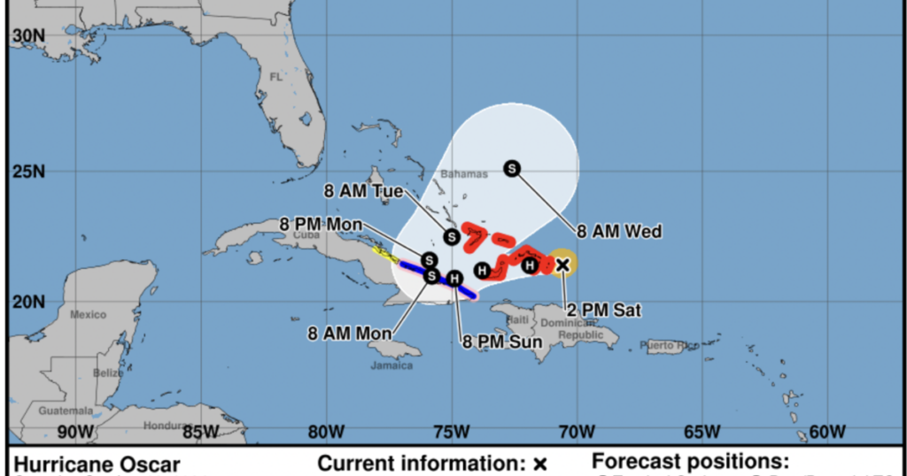 Hurricane Oscar formed Saturday off the coast of the Bahamas, the National Hurricane Center in Miami said. It characterized the storm as “tiny.”