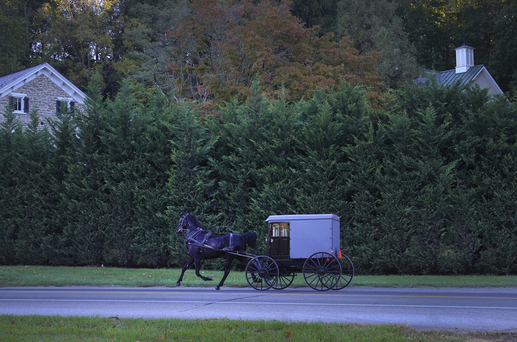 On a recent weekday afternoon, an Amish man in a horse-drawn buggy navigated through a busy intersection of auto traffic in Pennsylvania’s Lancaster County, past a billboard proclaiming: “Pray for God’s Mercy for Our Nation.”