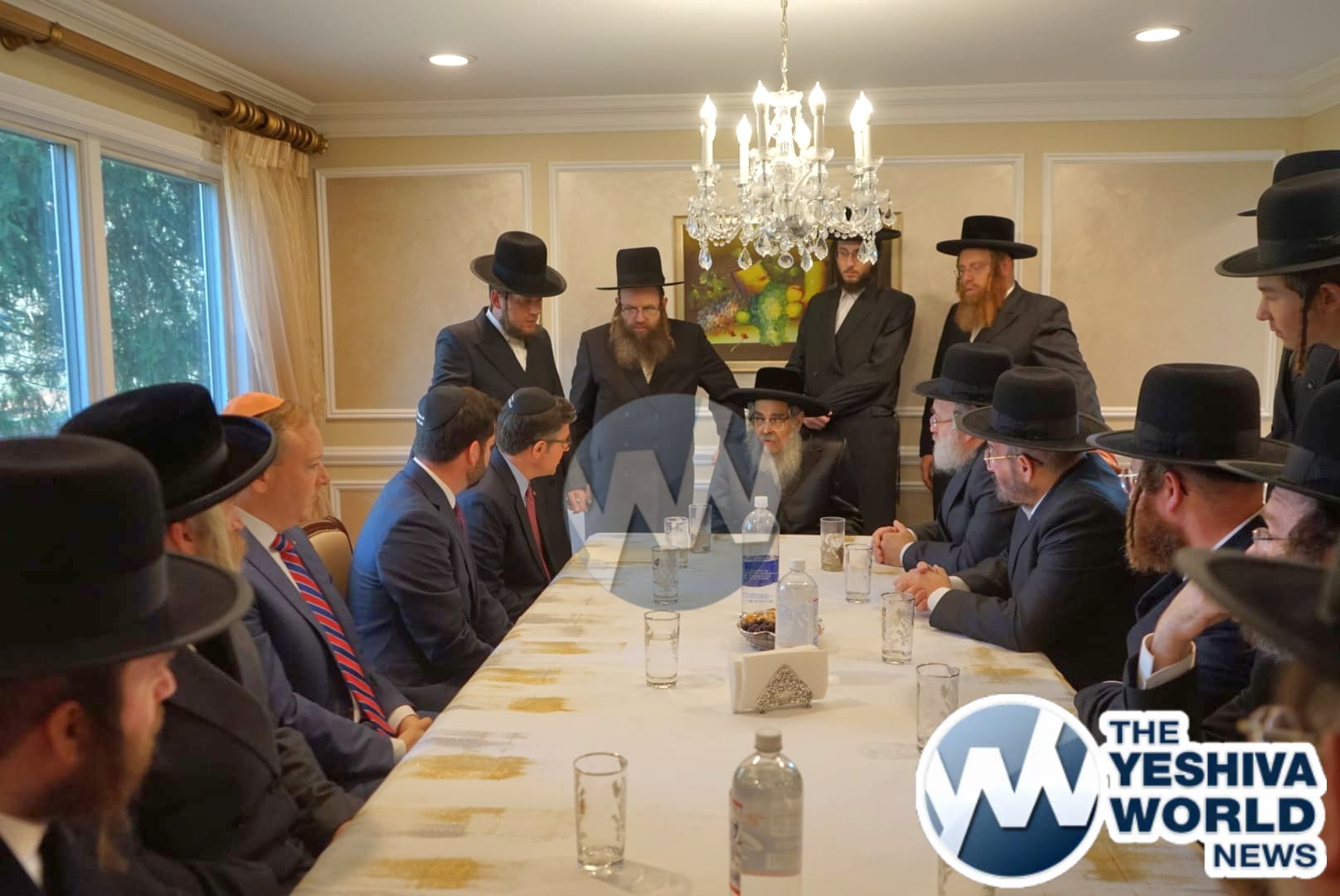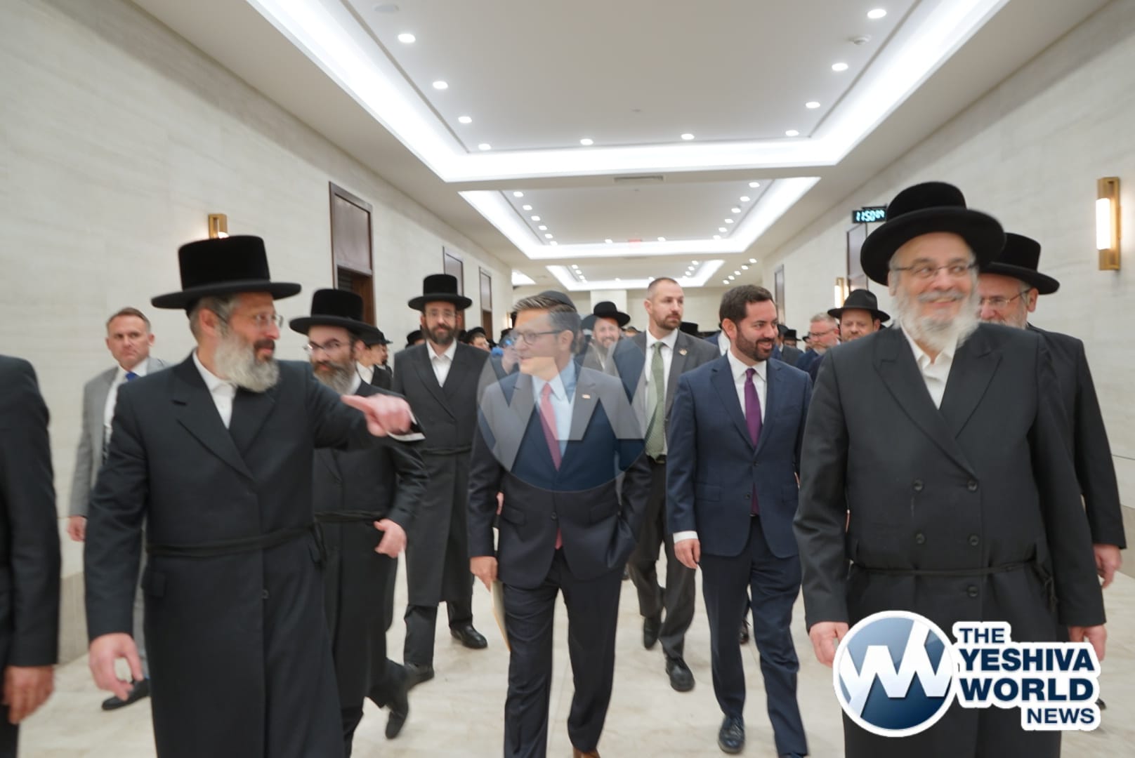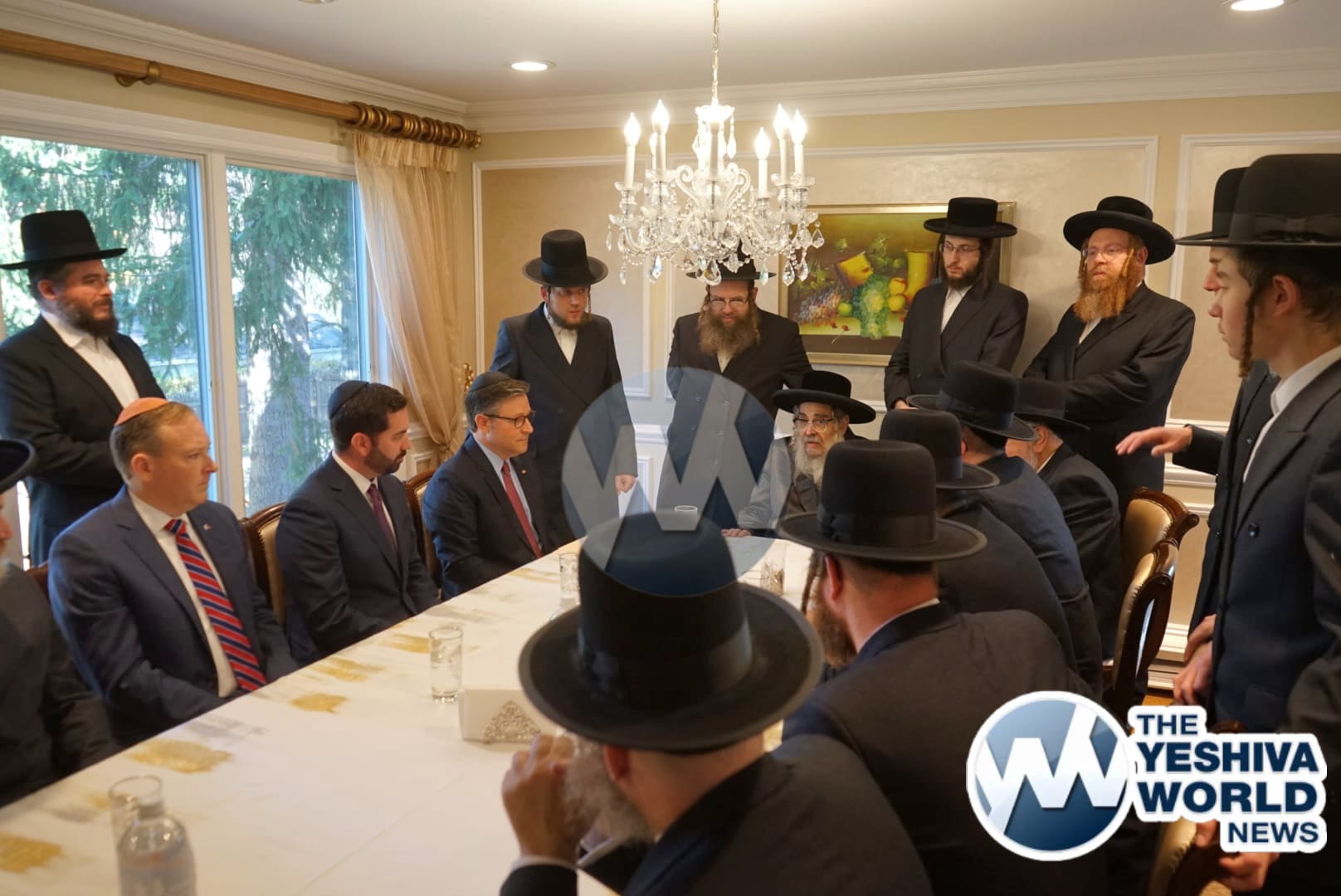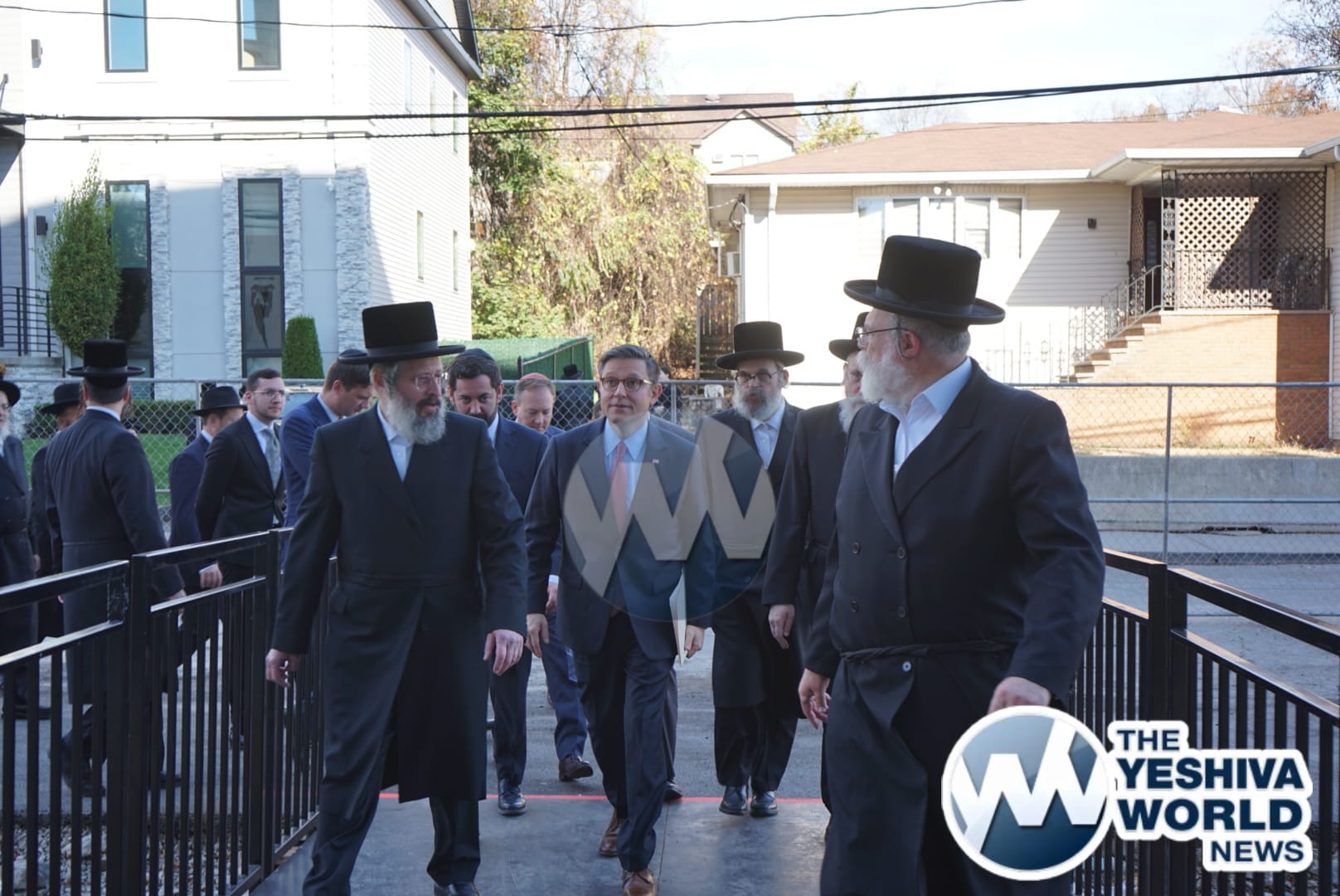 The delegation’s first stop was in Monsey, where they met with the Viznitzer Rebbe. Speaker Johnson then proceeded to meet with the Satmar Rebbe of Kiryas Joel, HaRav Aron Teitelbaum Shlita, who made a special trip to Monsey from Kiryas Joel, greeting the Speaker at his vacation residence.