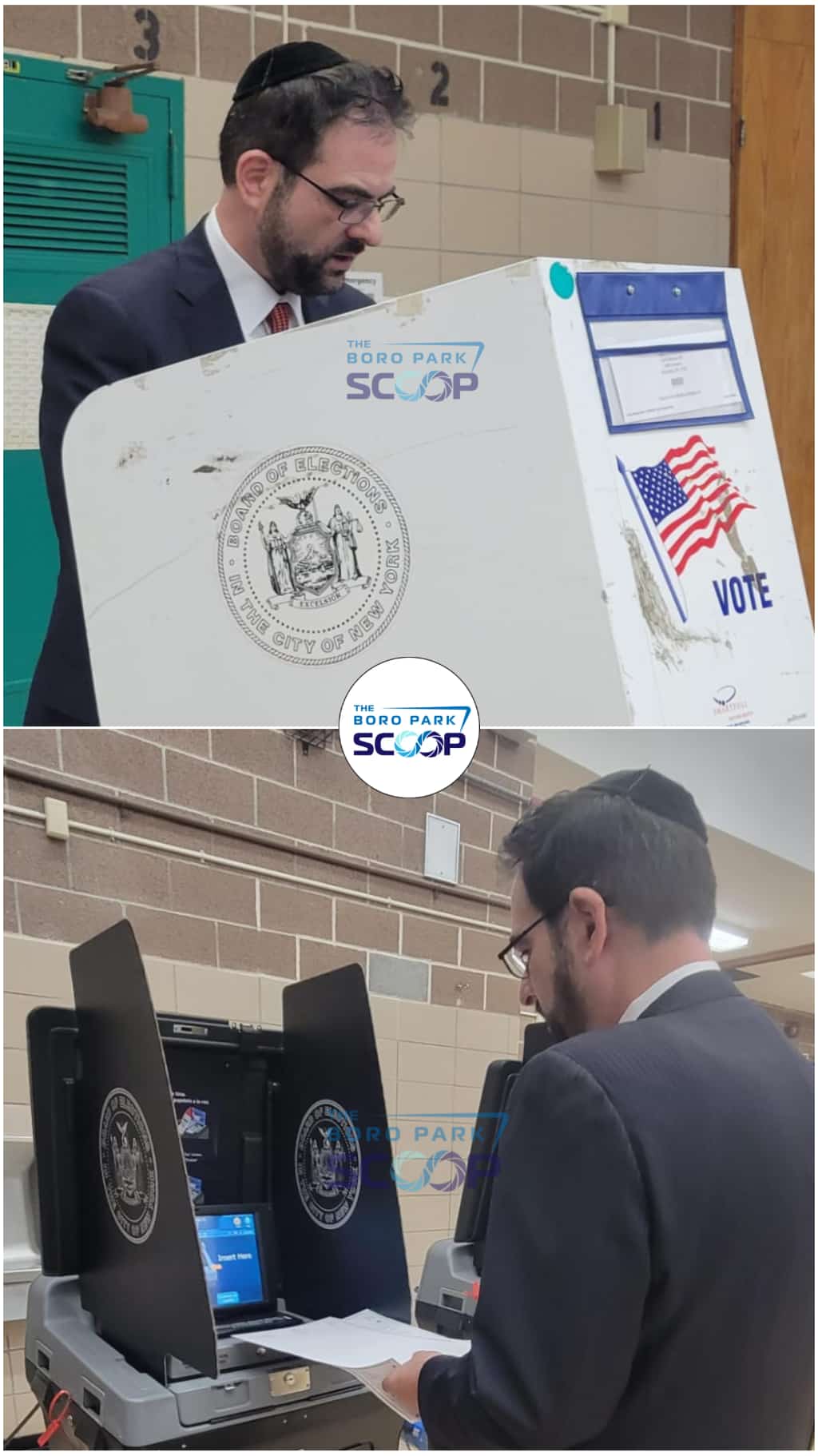 Councilman Kalman Yeger, who is running unopposed for the Assembly seat representing Flatbush and Midwood, participated in today’s election by casting his vote. (Photo Credit: Shimon Gifter)