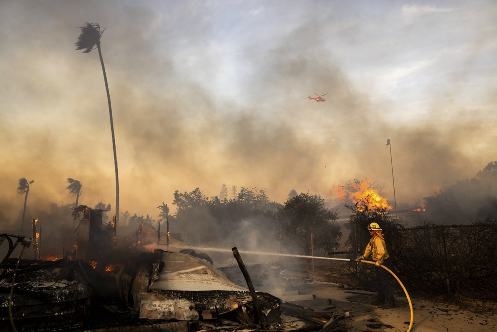 California made good progress against a major wildfire in Ventura County, northwest of Los Angeles, that broke out a week ago and quickly exploded in size because of dry Santa Ana winds. The Mountain fire was 60% contained on Wednesday.