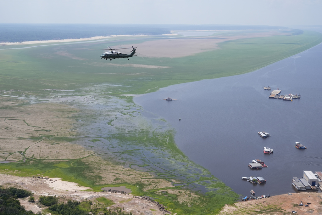 Flying over a stretch of the Amazon in a helicopter, Biden saw severe erosion, ships grounded in the Negro River tributary, and fire damage. He also passed over a wildlife refuge and the expansive waters where the Negro River joins the Amazon. He was joined by Carlos Nobre, a Nobel Prize-winning scientist and expert on how climate change is harming the Amazon.