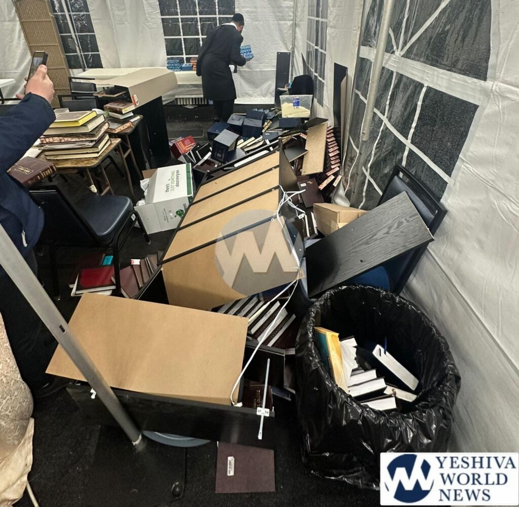The Clarkstown Police Department is investigating a deeply troubling act of vandalism that occurred at a shul on Tor Terrace early Thursday morning. Mispalllim arrived to find siddurim and chumashim discarded in a garbage can, three bookshelves destroyed, and seforim scattered across the floor, Monsey Scoop reported.
