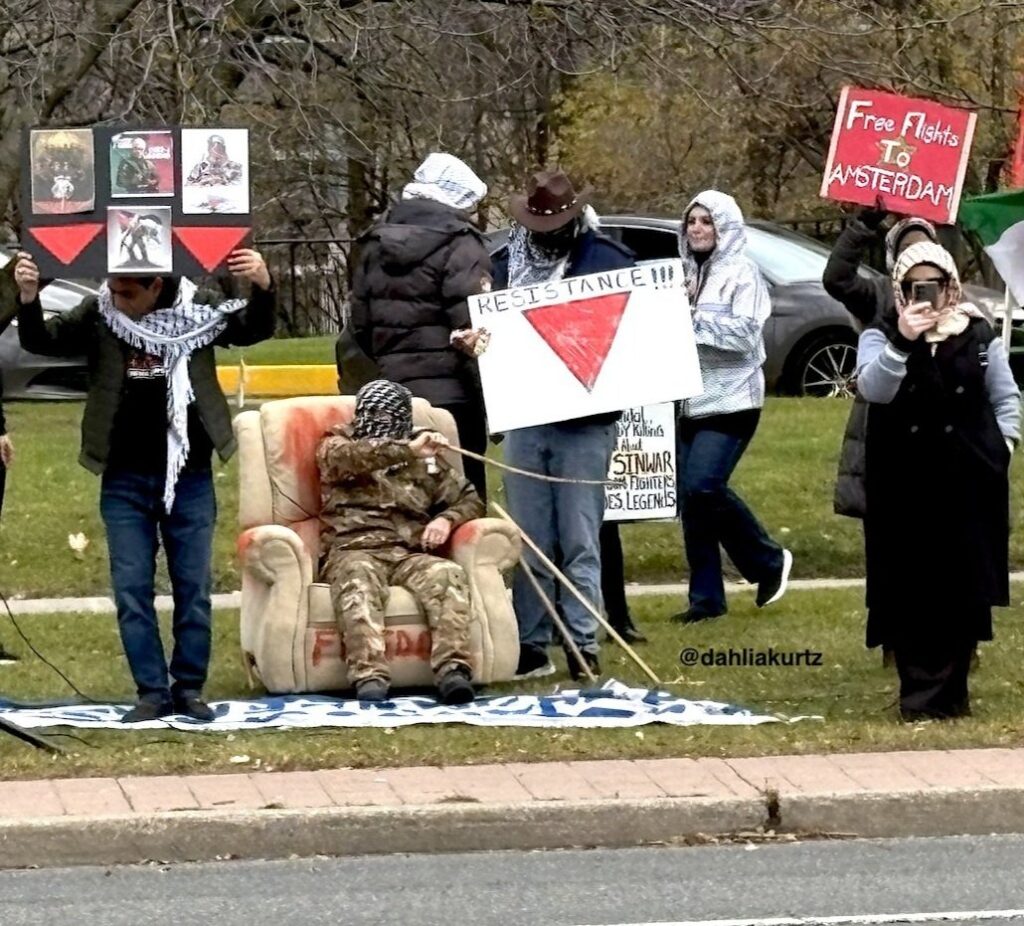 Photos from the rally show protesters engaging in hateful displays, including one dressed as slain Hamas leader Yahya Sinwar, who orchestrated the terror group’s October 7, 2023, attack on southern Israel. Another protester held a sign reading, “Free flights to Amsterdam,” referencing recent violent attacks on Israeli tourists in the Dutch capital.