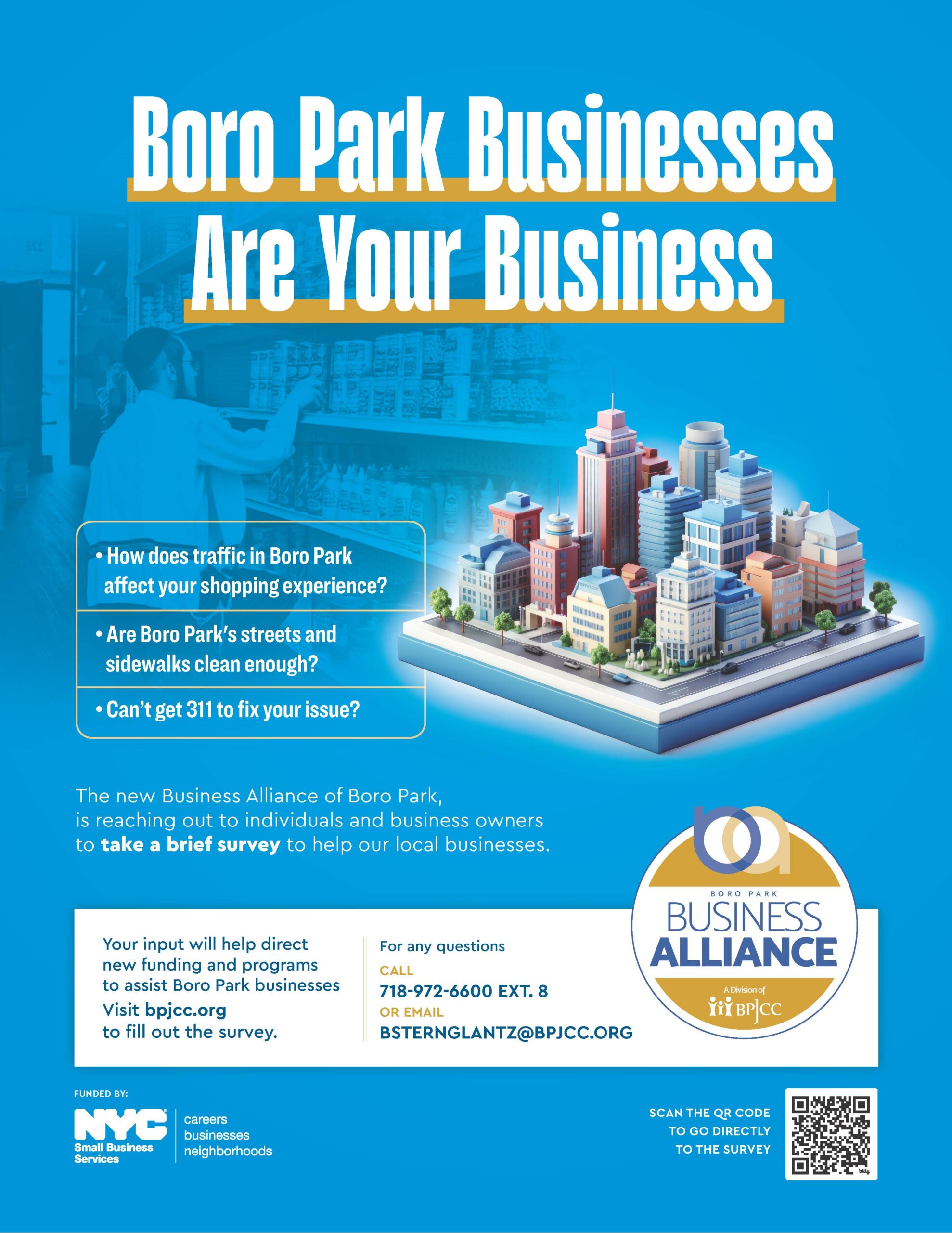 “We can only succeed in knowing what the community needs through input from the community,” BPJCC CEO Avi Greenstein states. “A few minutes of your time can and will make a difference for Boro Park Businesses.”