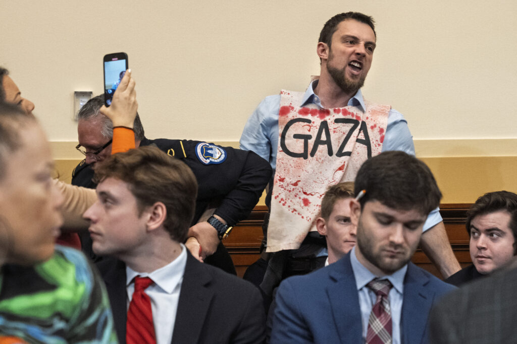 He opened his appearance before the committee by turning to families of U.S. forces killed in the withdrawal and expressing condolences. Protesters repeatedly interrupted his comments, crying out “scum” and “genocide,” before security cleared the room of them.