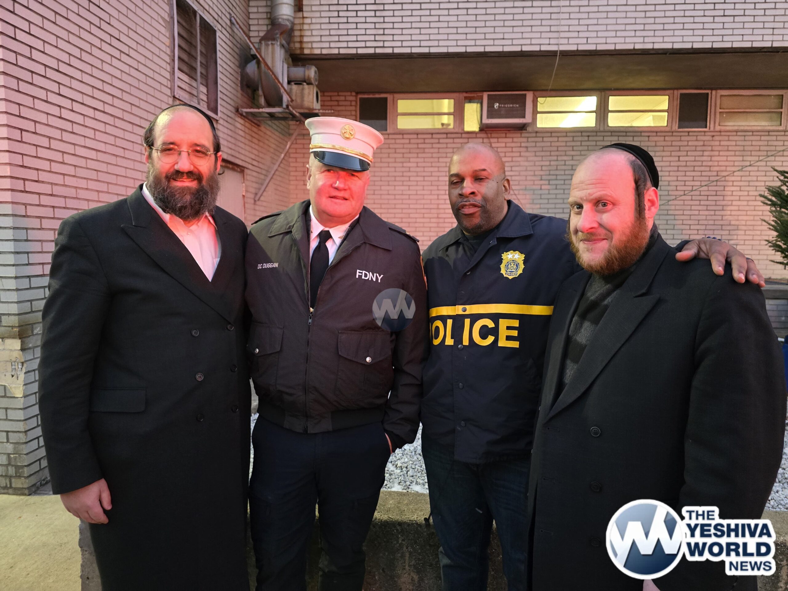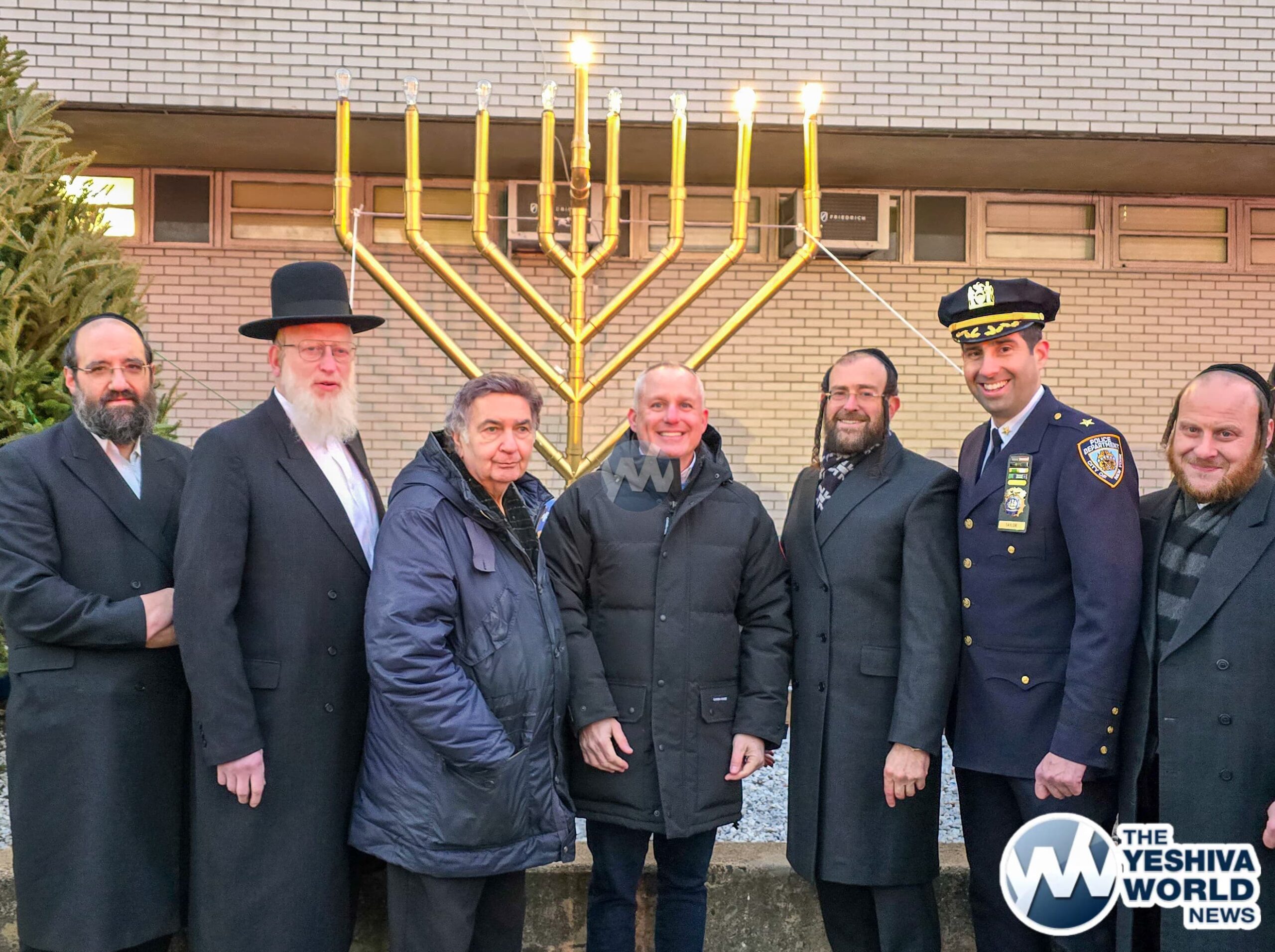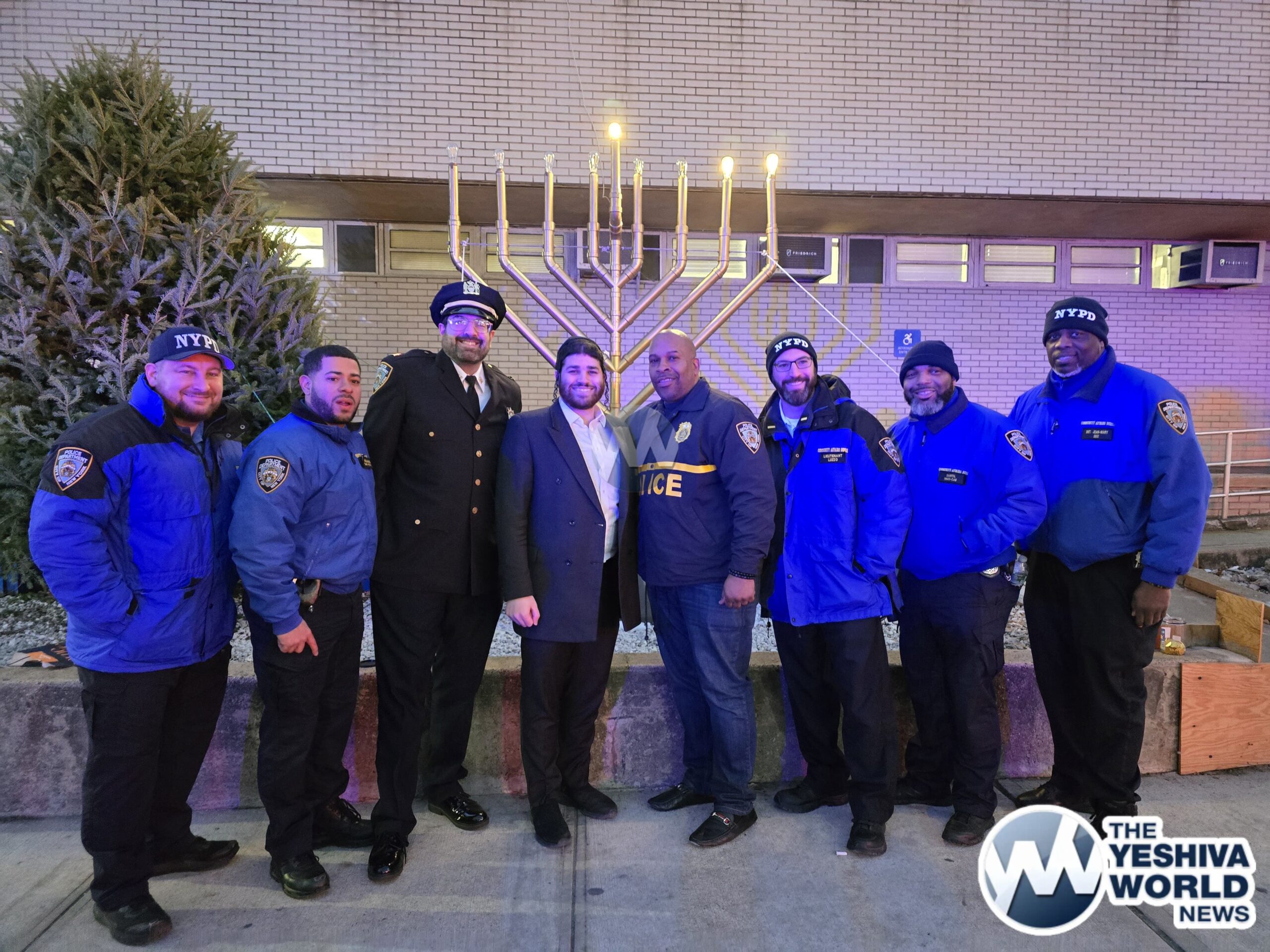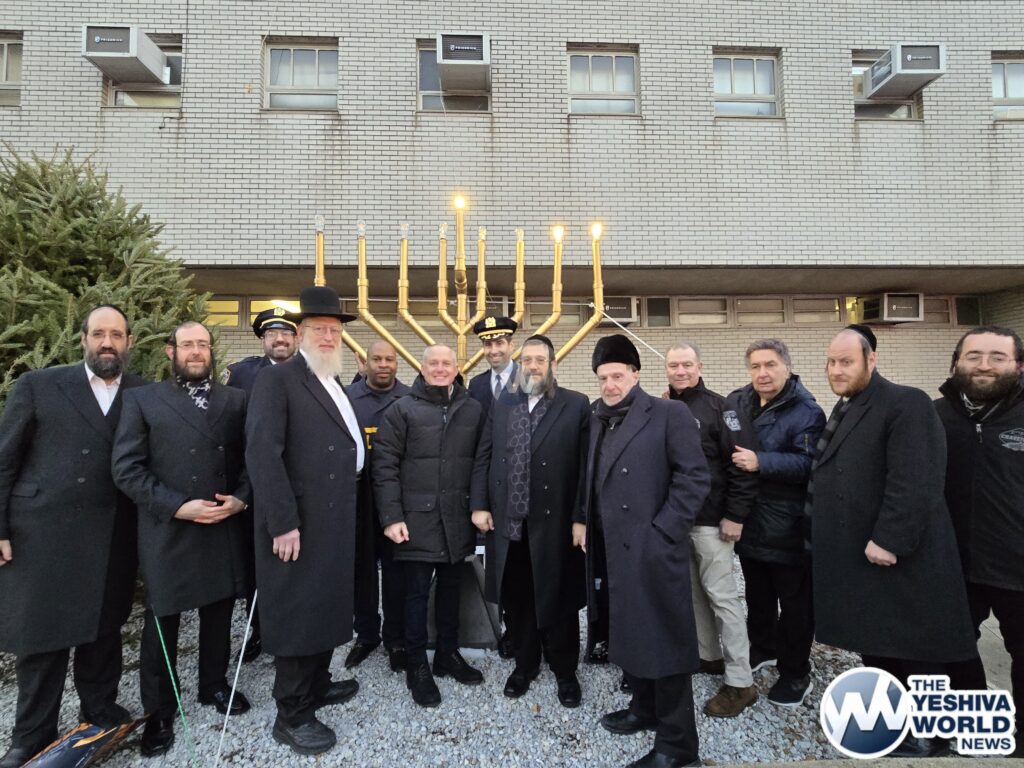 NYPD Chief Henderson, Deputy Chief Richie Taylor, FDNY Commissioner Tucker, along with representatives from Williamsburg’s Shomrim and Chaveirim, gathered for the menorah lighting ceremony at the 90th precinct on Thursday night.