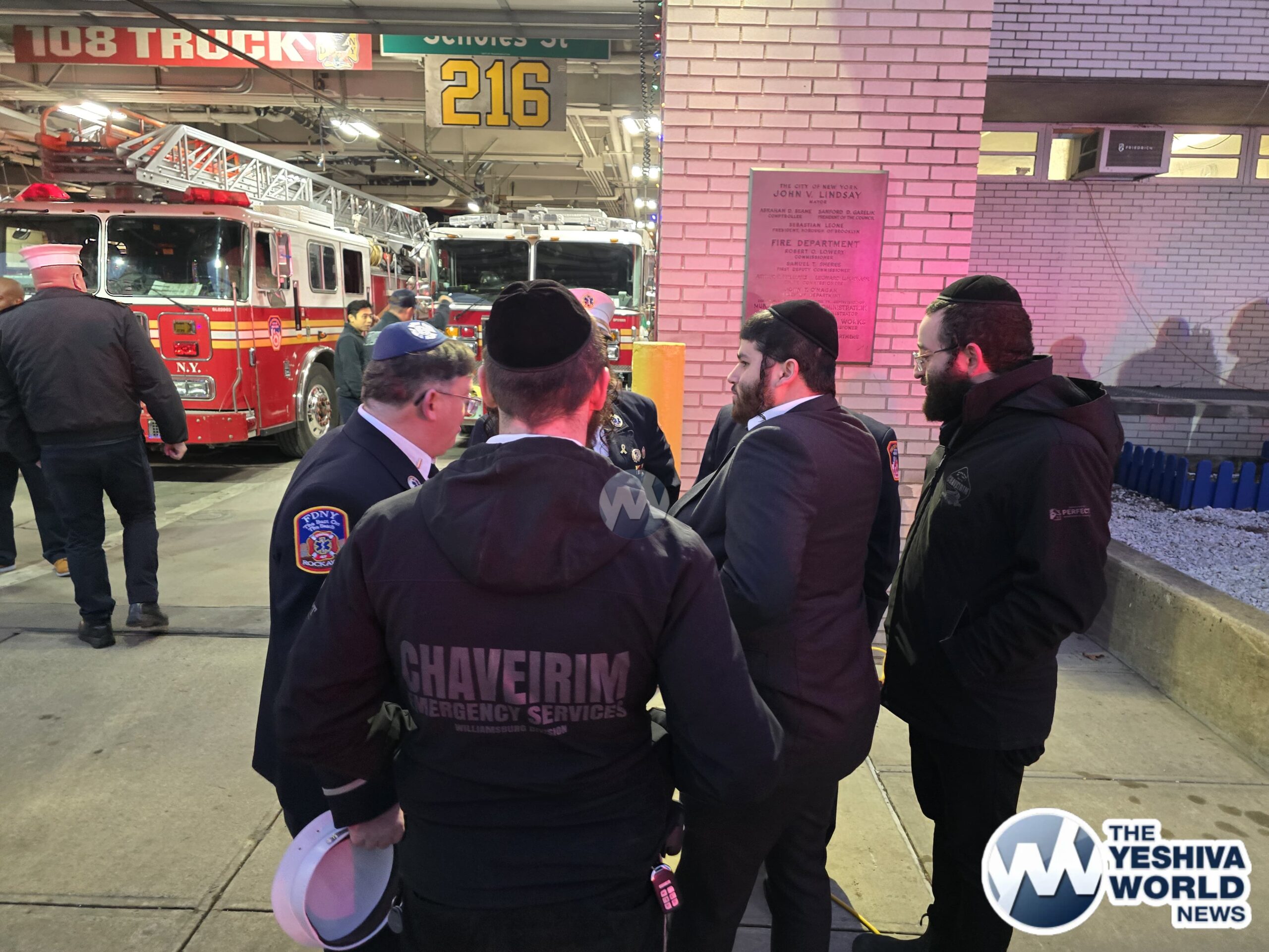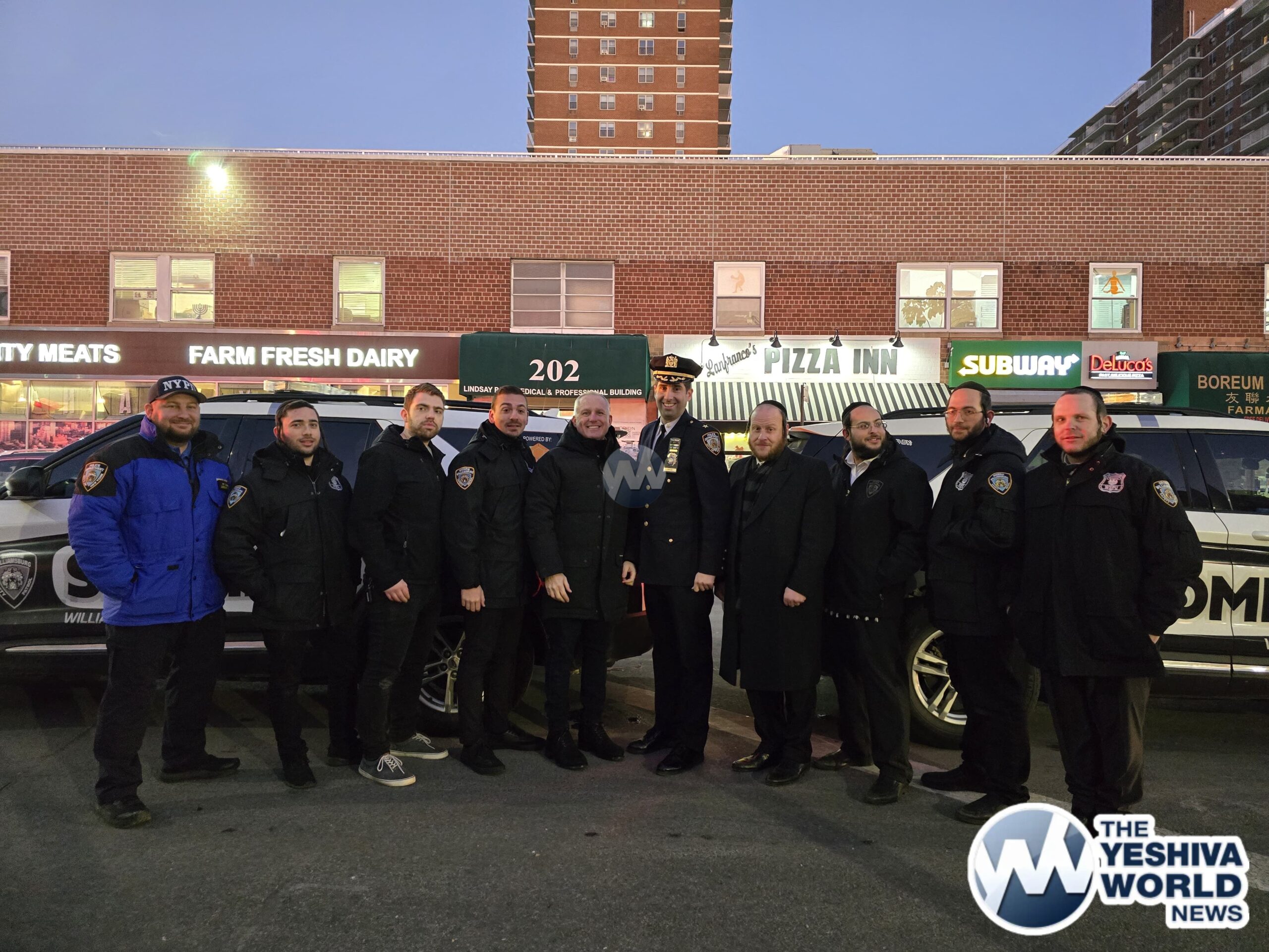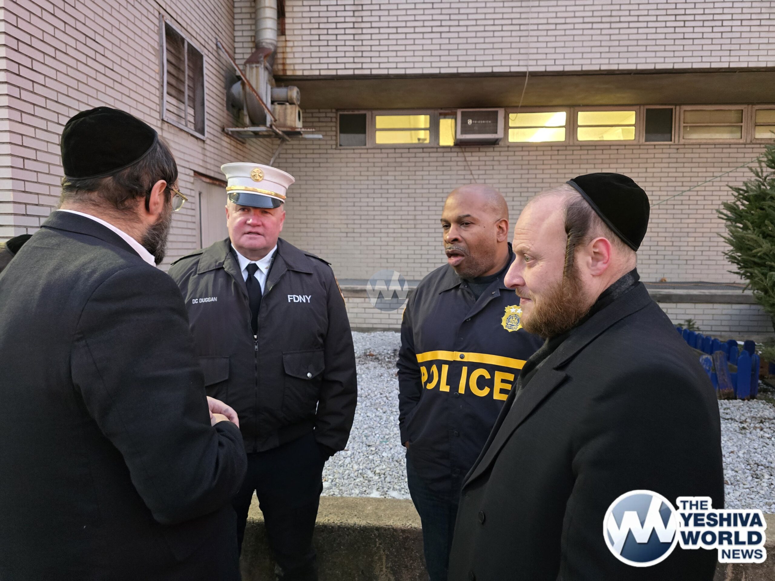 NYPD Chief Henderson, Deputy Chief Richie Taylor, FDNY Commissioner Tucker, along with representatives from Williamsburg’s Shomrim and Chaveirim, gathered for the menorah lighting ceremony at the 90th precinct on Thursday night.