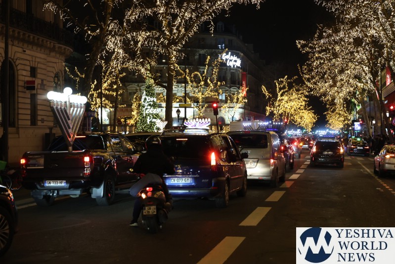 Five hundred vehicles took to the streets of Paris to brighten the streets in the city’s annual Chanukah Menorah Parade.