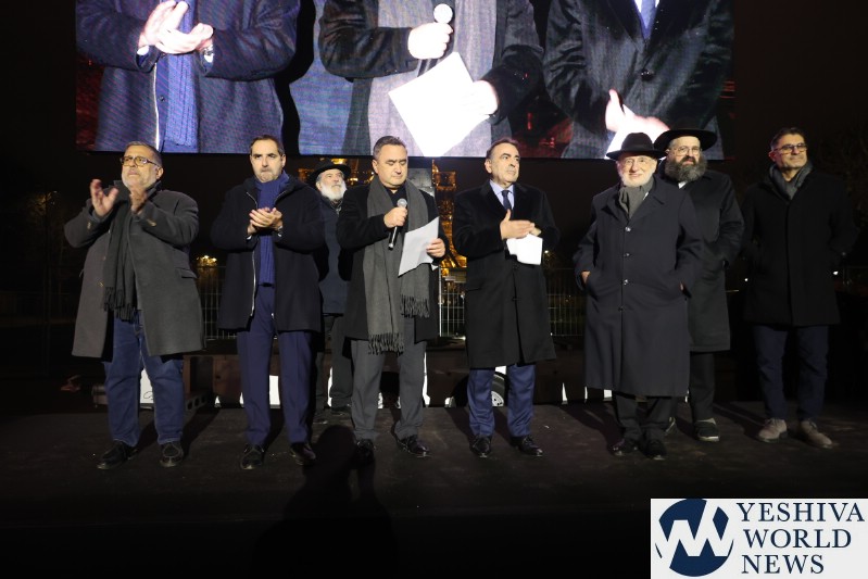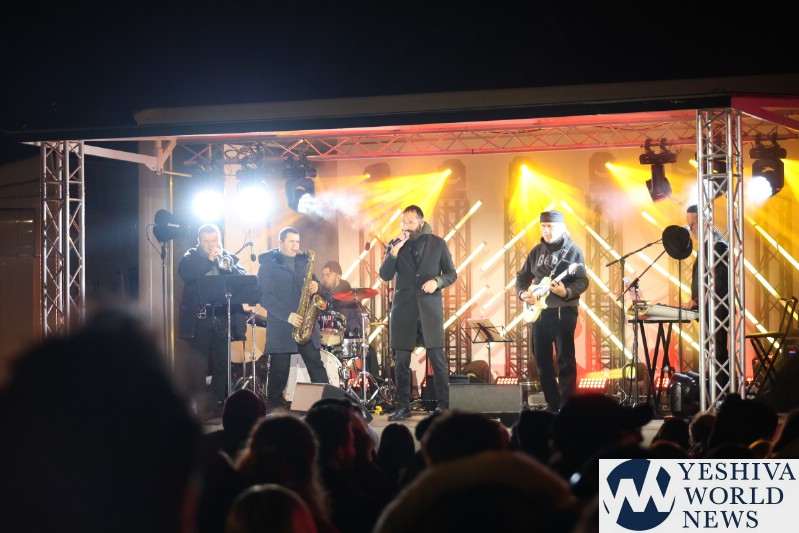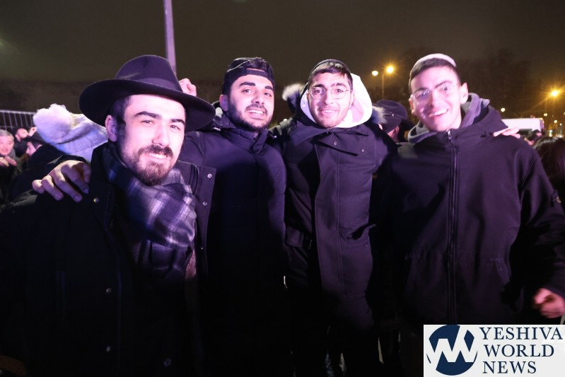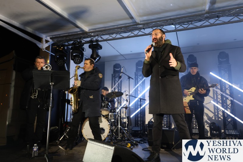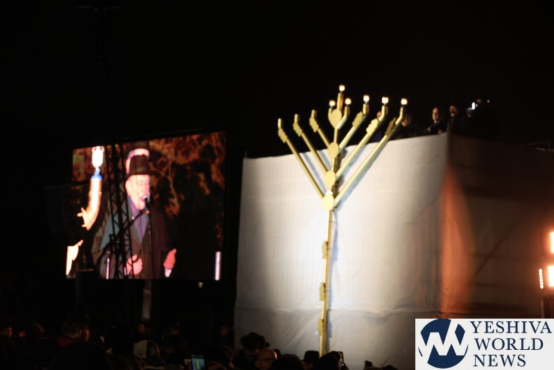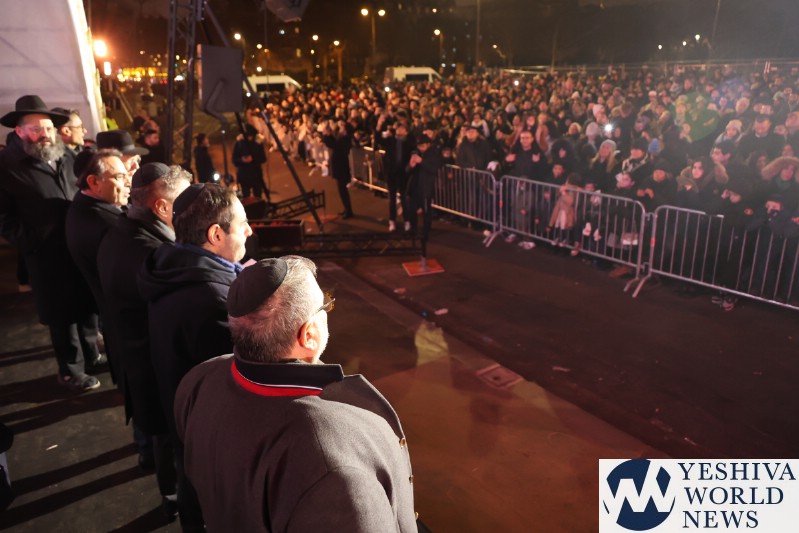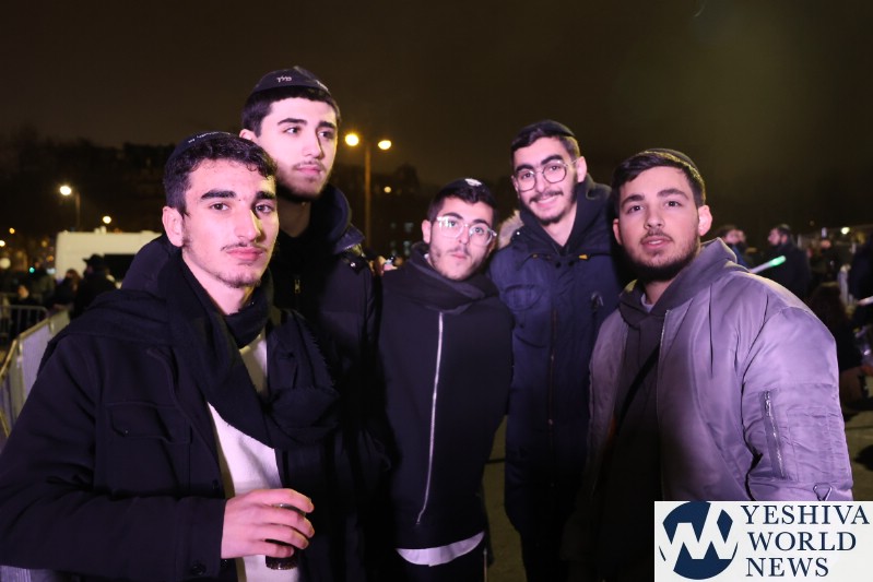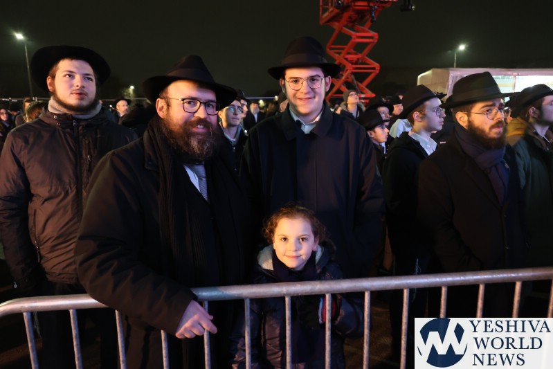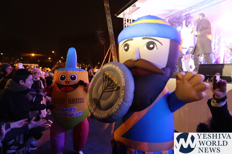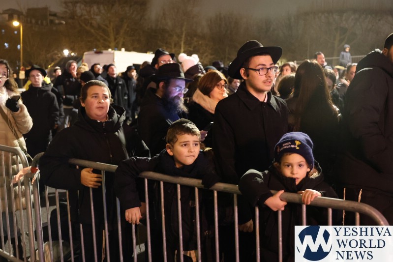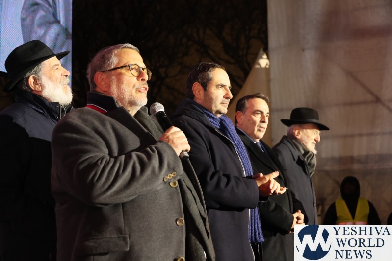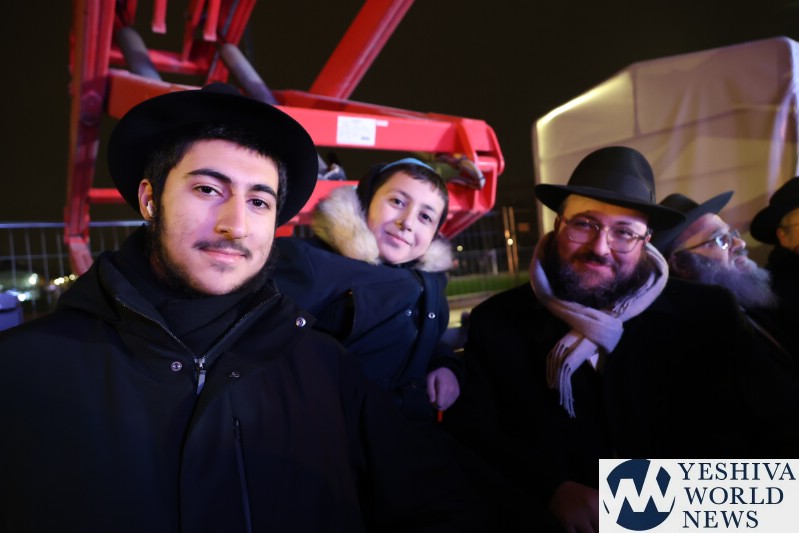 A large crowd gathered in front of the Eiffel Tower for the lighting of the fifth Chanukah candle.