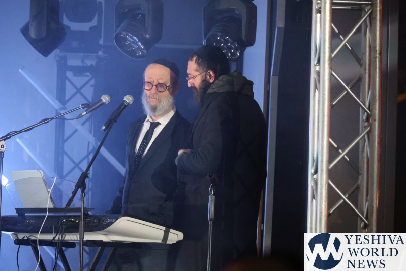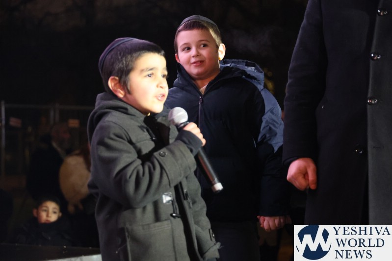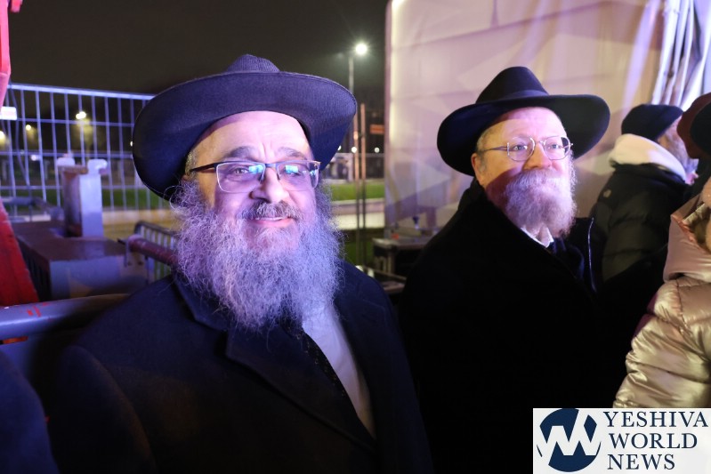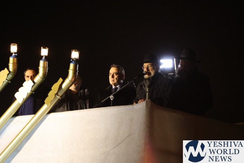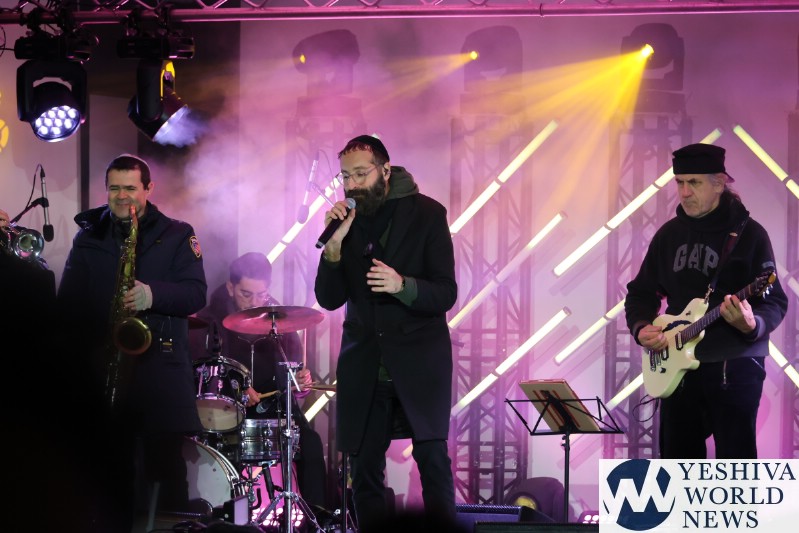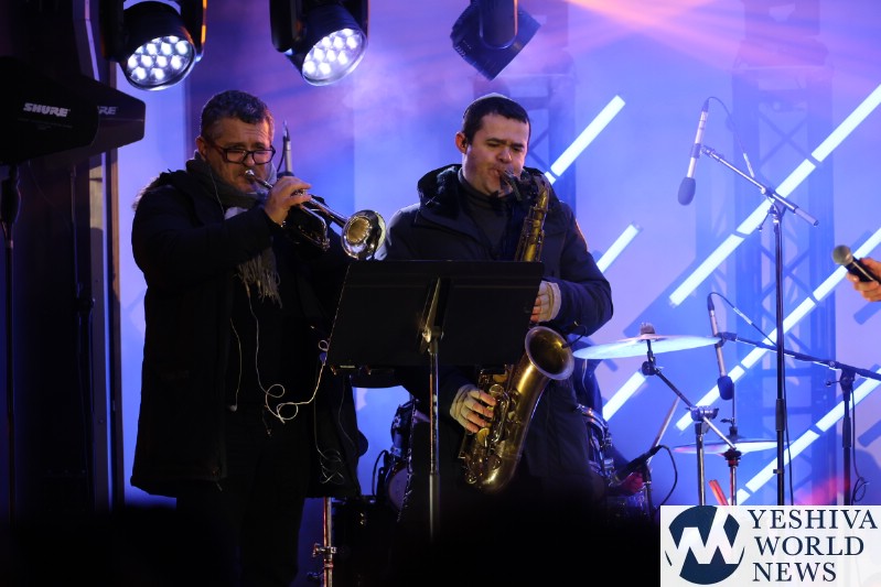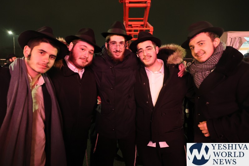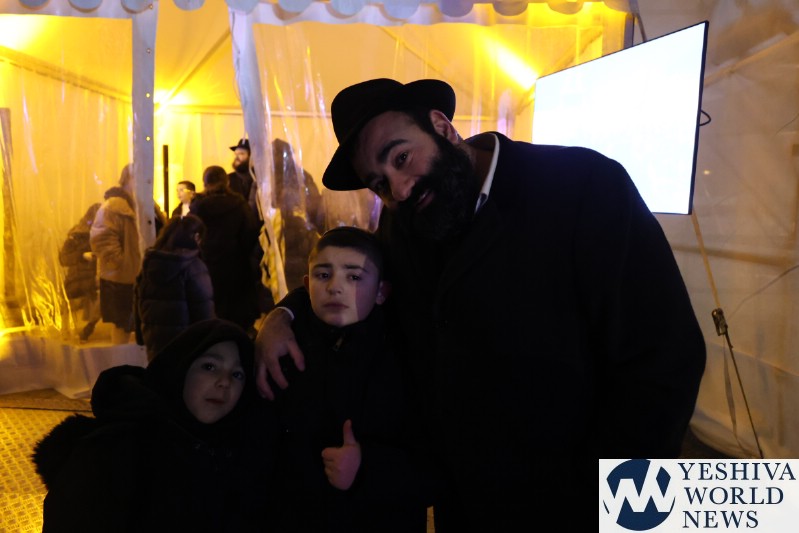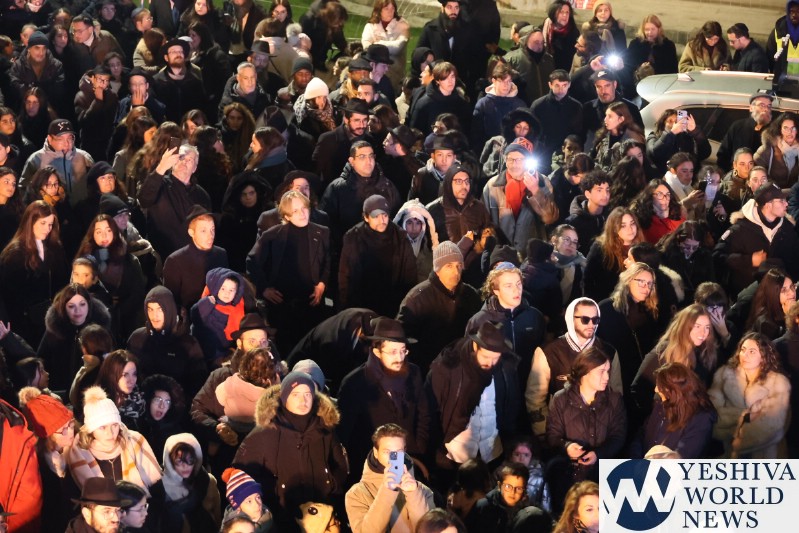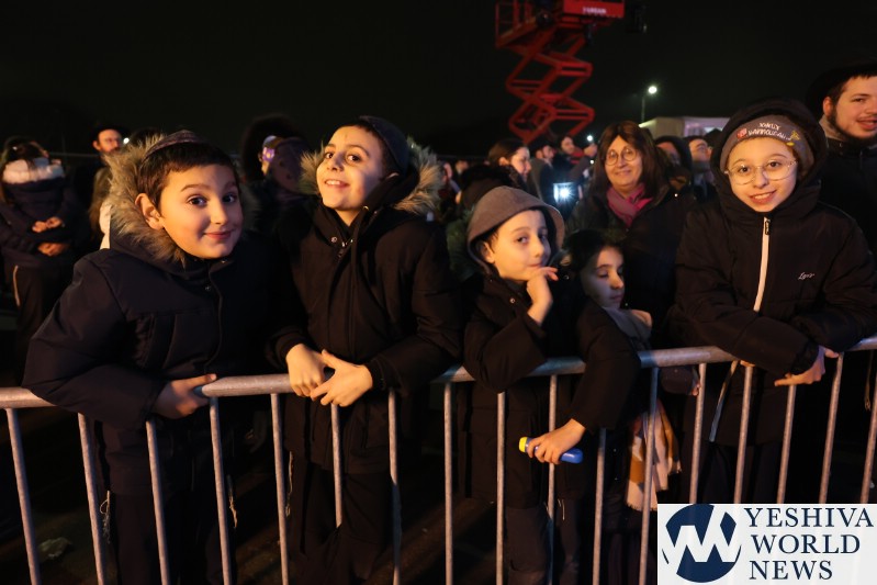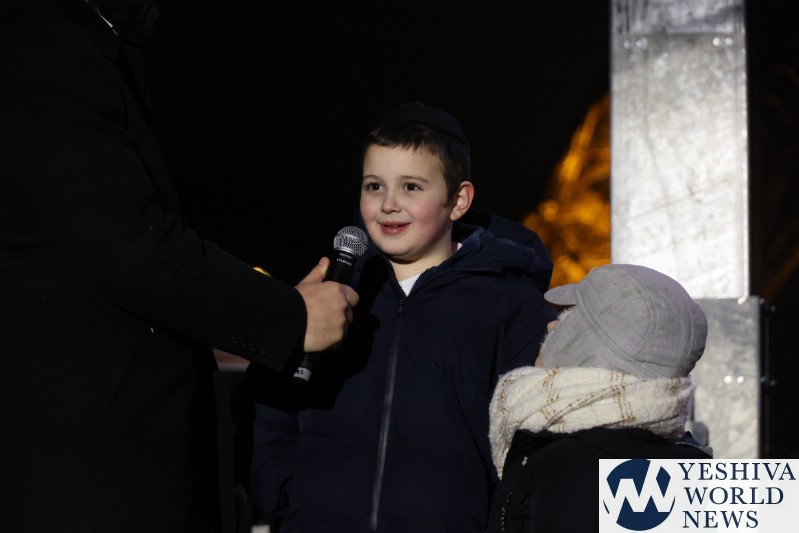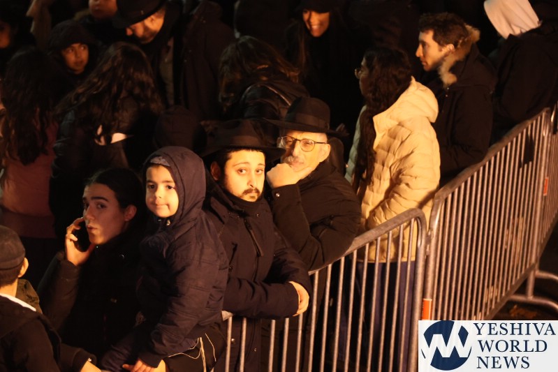 A large crowd gathered in front of the Eiffel Tower for the lighting of the fifth Chanukah candle.
