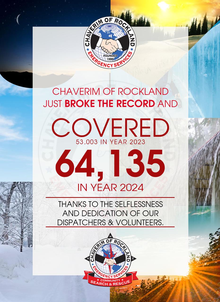 Chaverim of Rockland, has broken its own record by responding to an astonishing 64,135 calls throughout the year 2024.
