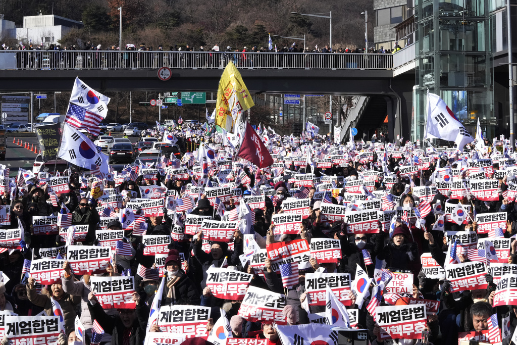 Braving subfreezing temperatures, thousands of Yoon’s supporters rallied for hours near his residence on Thursday amid a heavy police presence, waving South Korean and American flags while chanting, “Nullify the impeachment!” and “We will protect President Yoon Suk Yeol!” Officers removed some protesters who laid down on a road leading to the entrance of Yoon’s residence, but there were no immediate reports of major clashes.