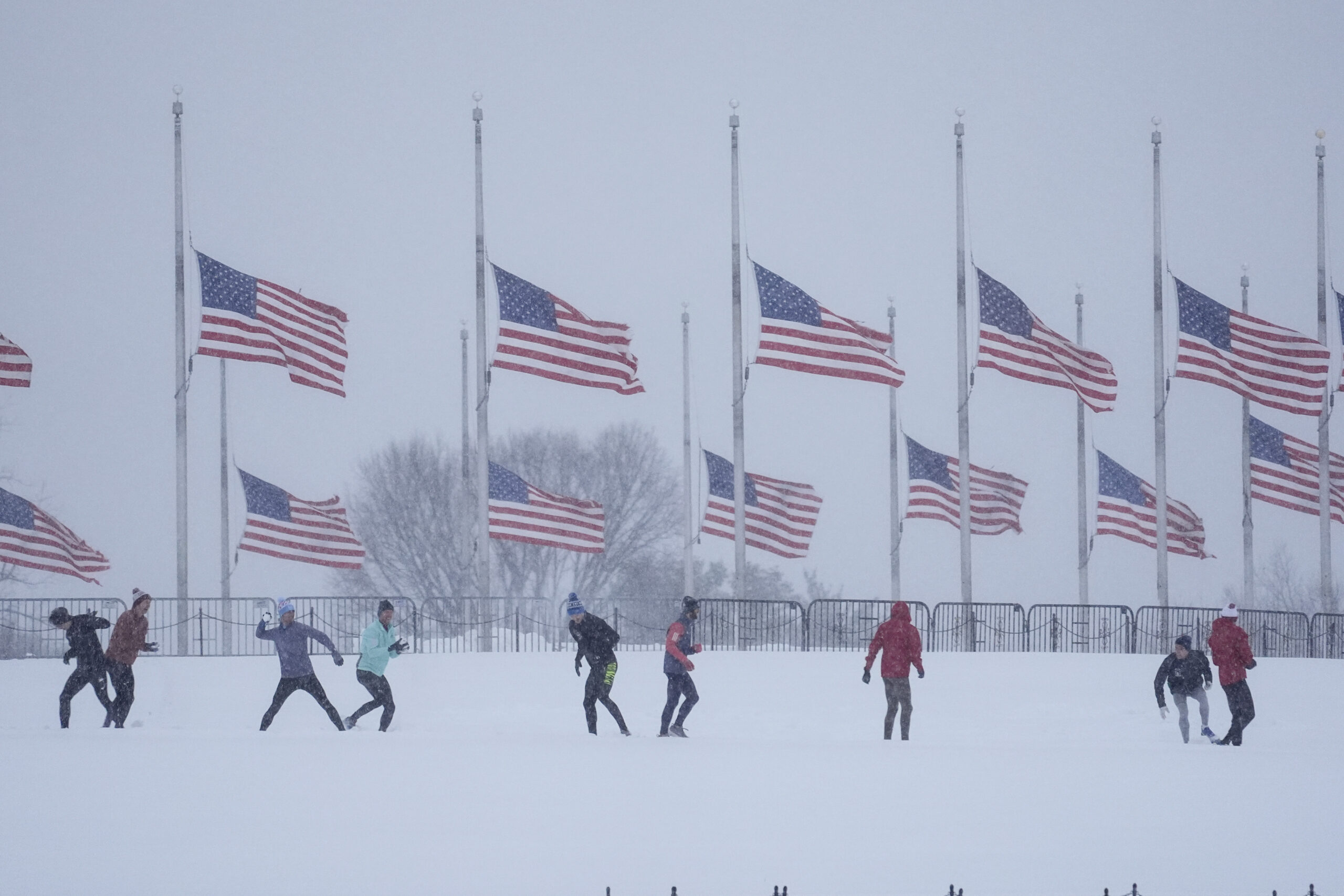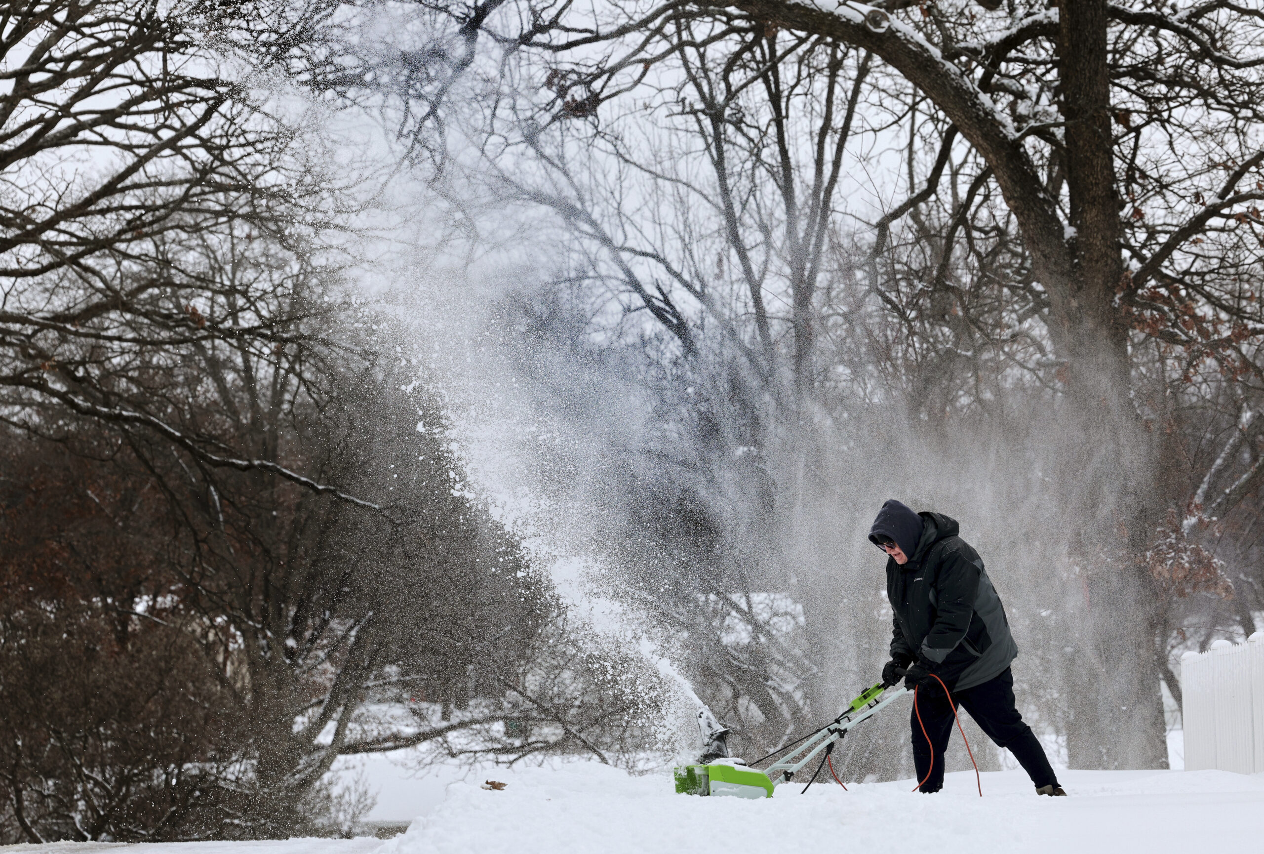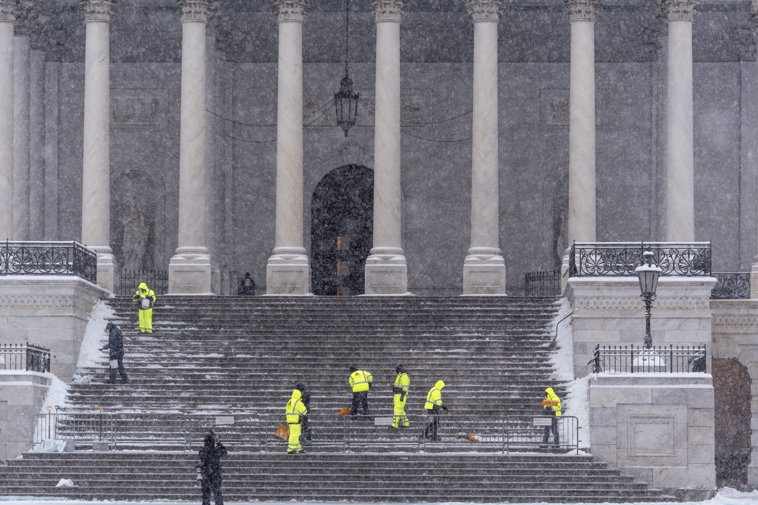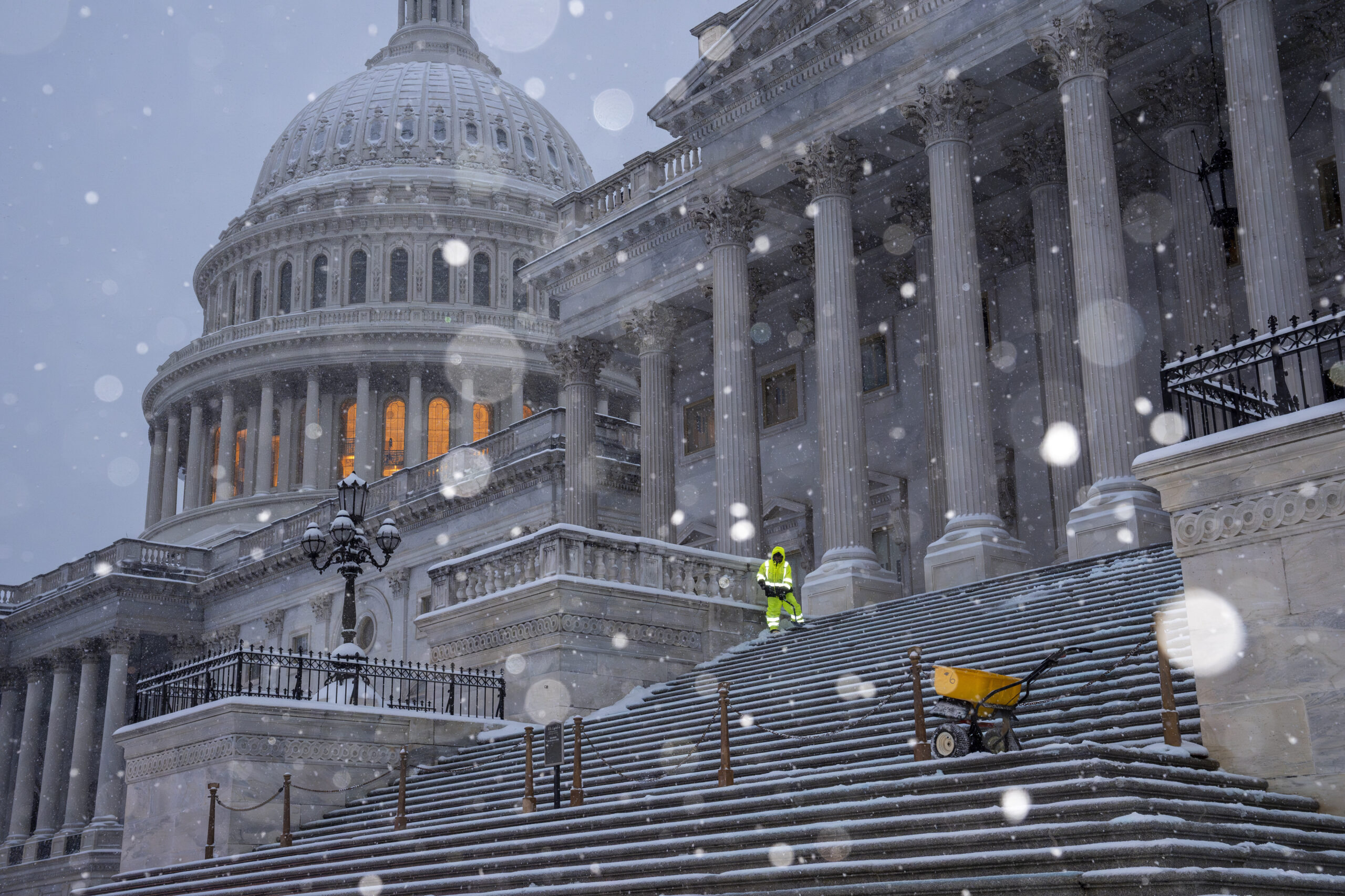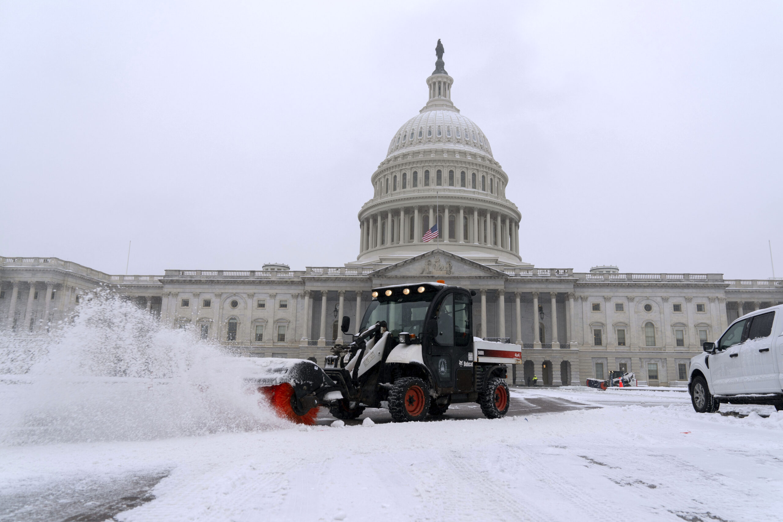 Ice encases tree branches in downtown Lexington, Ky., on Monday, Jan. 6, 2025. (Ryan C. Hermens/Lexington Herald-Leader via AP)Workers clear the plaza at the Capitol as snow falls ahead of a joint session of Congress to certify the votes from the Electoral College in the presidential election, in Washington, Monday, Jan. 6, 2025. (AP Photo/J. Scott Applewhite)National Park Service workers shovel a pathway during a winter storm at the White House, Monday, Jan. 6, 2025, in Washington. (AP Photo/Mark Schiefelbein)Snow falls during a winter storm at the White House, Monday, Jan. 6, 2025, in Washington. (AP Photo/Mark Schiefelbein)Snow falls at the Capitol ahead of a joint session of Congress to certify the votes from the Electoral College in the presidential election, in Washington, Monday, Jan. 6, 2025. (AP Photo/J. Scott Applewhite)Snow covers homes during a winter storm, Monday, Jan. 6, 2025, in Cincinnati. (AP Photo/Joshua A. Bickel)Workers clear steps at the Capitol as snow falls ahead of a joint session of Congress to certify the votes from the Electoral College in the presidential election, in Washington, Monday, Jan. 6, 2025. (AP Photo/J. Scott Applewhite)Workers clear steps at the Capitol as snow falls ahead of a joint session of Congress to certify the votes from the Electoral College in the presidential election, in Washington, Monday, Jan. 6, 2025. (AP Photo/J. Scott Applewhite)Flags fly at half-staff in memorial to former President Jimmy Carter during a winter snow storm at Union Station in Washington, Monday, Jan. 6, 2025. Carter died at age 100. (AP Photo/Matt Rourke)People engage in a snowball fight during a winter snow storm in Washington, Monday, Jan. 6, 2025. (AP Photo/Matt Rourke)The White House is pictured during a winter snow storm in Washington, Monday, Jan. 6, 2025. (AP Photo/Matt Rourke)The Capitol is pictured as snow falls ahead of a joint session of Congress to certify the votes from the Electoral College in the presidential election in Washington, Monday, Jan. 6, 2025. (AP Photo/Matt Rourke)People engage in a snowball fight as U.S. flags, along the base of the Washington Monument, fly at half-staff in memorial to former President Jimmy Carter, who died at the age of 100, in Washington, Monday, Jan. 6, 2025. (AP Photo/Matt Rourke)A person clears off a car during a winter snow storm in Washington, Monday, Jan. 6, 2025. (AP Photo/Matt Rourke)A person walks his dog in view of the Capitol during a winter snow storm in Washington, Monday, Jan. 6, 2025. (AP Photo/Matt Rourke)Horses in a field dig through the ice and snow for grass during a winter storm in Louisville, Ky., Monday, Jan. 6, 2025. (AP Photo/Timothy D. Easley)Tony Savage, who works for the city of Annapolis, clears snow along the City Dock in Annapolis, Md., Monday, Jan. 6, 2025. (AP Photo/Brian Witte)A person holds an umbrella as they walk during a winter storm, Monday, Jan. 6, 2025, in Cincinnati. (AP Photo/Joshua A. Bickel)A pedestrian makes their way though a tunnel along the snow-covered Monon Trail in Carmel, Ind., Monday, Jan. 6, 2025. (AP Photo/Michael Conroy)Traffic makes it way on snow-covered U.S. 31 in Carmel, Ind., Monday, Jan. 6, 2025. (AP Photo/Michael Conroy)A walker pauses to take a photo as she walks along the snow-covered Monon Trail in Carmel, Ind., Monday, Jan. 6, 2025. (AP Photo/Michael Conroy)Dave Thomasson uses an electric snowblower to clear his driveway in the Webster Oaks subdivision of Webster Groves, Mo. as residents started clearing a path on Monday, Jan. 6, 2025. (Robert Cohen/St. Louis Post-Dispatch via AP)Jagmeet Singh, a manager at Clifton Market, shovels the sidewalk in front of the store during a winter storm, Monday, Jan. 6, 2025, in Cincinnati. (AP Photo/Joshua A. Bickel)Heavy snow falls as a person walks along U.S. Route 42 in Florence, Ky., Monday, Jan. 6, 2025. (AP Photo/Carolyn Kaster)A snowplow clears the area as snow blankets Capitol Hill ahead of a joint session of Congress to certify the votes from the Electoral College in the presidential election in Washington, Monday, Jan. 6, 2025. (AP Photo/Jose Luis Magana)The Capitol is seen through a security fence as snow blankets Capitol Hill ahead of a joint session of Congress to certify the votes from the Electoral College in the presidential election in Washington, Monday, Jan. 6, 2025. (AP Photo/Jose Luis Magana)