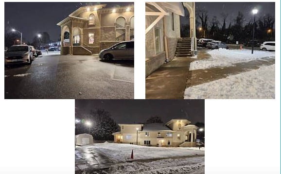 The roads, walkways and driveways around Mercaz Torah U’Tefillah are all clear. The Beis Medrash is especially welcoming on this cold and snowy night.
