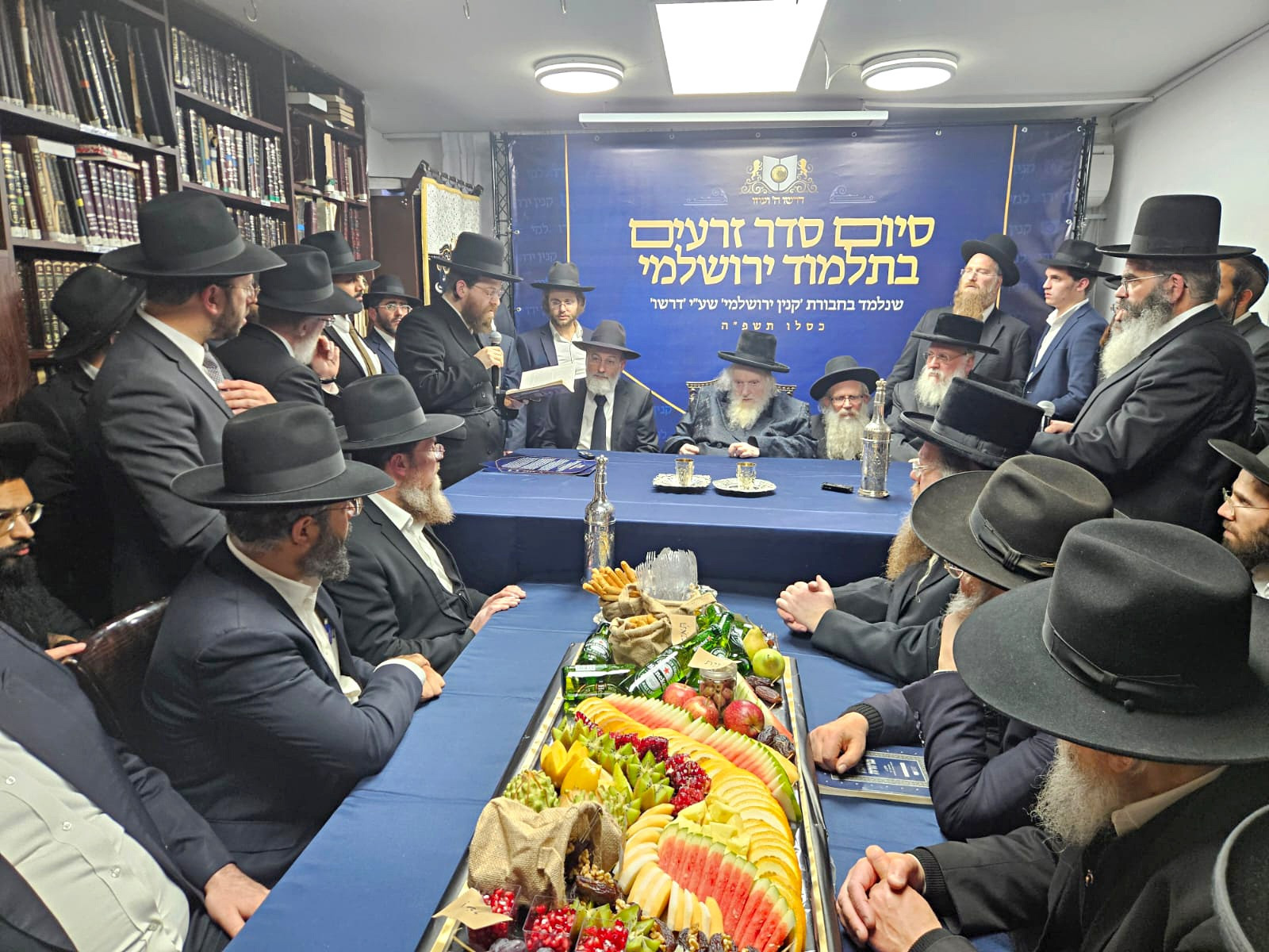 Rav Sternbuch, deeply moved by the sight of so many maggidei shiur representing thousands of participants, made a special effort to address the event despite the energy it required at his advanced age. He expressed his joy, saying, “It is a tremendous simcha to see a tzibbur that has completed the entire Talmud Yerushalmi on Seder Zeraim! This accomplishment, rare in past generations, reflects an unprecedented surge in limud haTorah among the masses. While our generation is inferior to previous ones in many respects, there are tremendous strides being made in limud haTorah. The completion of the Yerushalmi Zeraim by so many lomdim at one time is simply unprecedented,” exclaimed Rav Sternbuch with great emotion.
