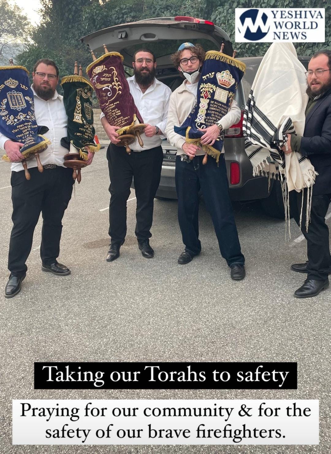 We have been told that the Sifrei Torah and all family members safely evacuated.