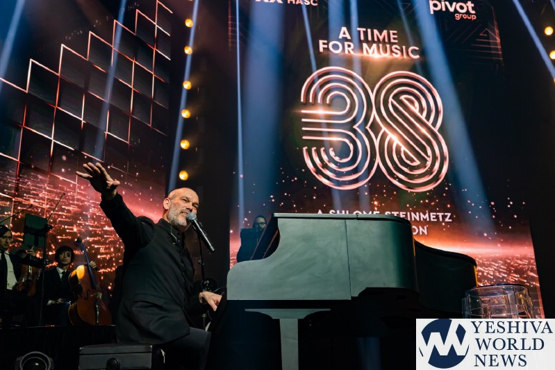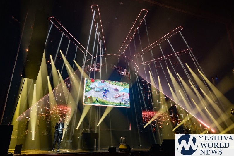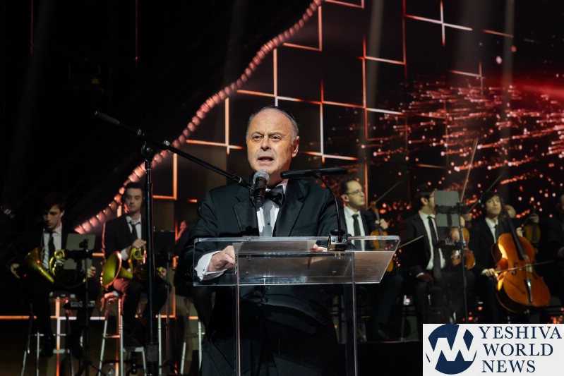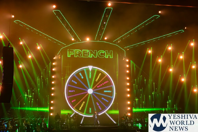 The video voiced by Nachum Segal himself, let us know who the next performer was. Benny Friedman came out performing his latest hit and the first song off his upcoming new album, titled “Thinking About Thanking. Benny was joined by dancers in construction uniforms with hard hats. The audience was eating it and Benny’s vocals were stellar like always. Benny then invited Eli Schwebel back to the stage to perform a HASC English Medley including Who Am I, Candles, and Small Piece of Heaven. Amazing classics penned by Abie Rotenberg, performed masterfully by Friedman and Schwebel. With Eli leaving the stage, Benny looked at the monitor when this wheel of musical styles appeared. Benny was telling us that music is a universal language, and this next song is a perfect example of that. It became a global phenomenon with a message who relates to all the people of the world. So tonight, Benny thought we would have a little fun. Instead of performing it as is, let us leave it to the luck on the draw and let the wheel decide. He then continued to perform the hit song Od Yoter Tov in the styles of French, Latin and Klezmer, and finally in the original Israeli. The Freilach Orchestra performed each style, perfectly directed by Tzvi Blumenfeld. It was definitely a different and a unique presentation.