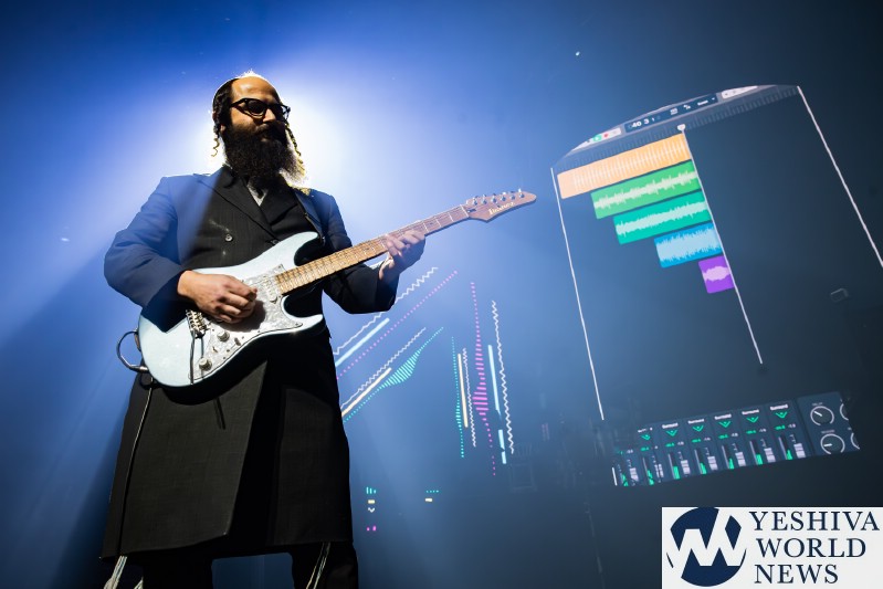 With the lights going down, two stagehands were seen wheeling out a console, similar to a DJ board. Would it be Matt Dubb? DJ Kraz? Then, guitarist Nachman Dryer took center stage and started playing a tune. When Shlomo and Zecharia of Zusha joined behind him at the console, the screen showed a recording program like Protools, that showed all the instruments that were being recorded live. The crowd went wild. With pumping music and strobing lights, Zusha accompanied by Nachman started playing Don’t Leave Me On My Own. Zusha went on to perform The World to Come, Same Love and Brighter. The audience was on their feet dancing in their seats. The night had definitely taken a new turn.