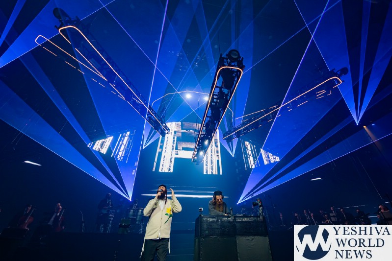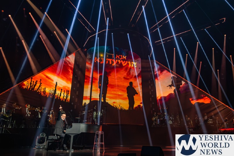 The next artist was being introduced by the video and with titles like Bring The Hose Down, was none other than superstar, singer, Avraham Fried. Avremel came out to his hit song No Jew Will Be Left Behind. The song featured an updated arrangement and with a very apropos message, after the release of three hostages earlier in the day. Avremel gets better and better with age. His voice transcends time and is still so clear and powerful as it was two decades ago. Avremel went into his hit ballad Lomo Hashem after that. With the last few chords of Lomo ending, Avremel asked world renowned pianist, Yaron Gershovsky, to join him on stage. Yaron proceeds to blow us away with his masterful playing and jazz. After about five minutes of Yaron playing, some of the notes started to sound like an Avraham Fried song. Indeed it was Dido Bei, composed by Yossi Green many years ago. The whole orchestra joined in and Avremel performed one of his biggest hits. Avremel closed out his set by singing a Chabad medley and going into the audience to dance with the crowd. It was truly heartwarming.