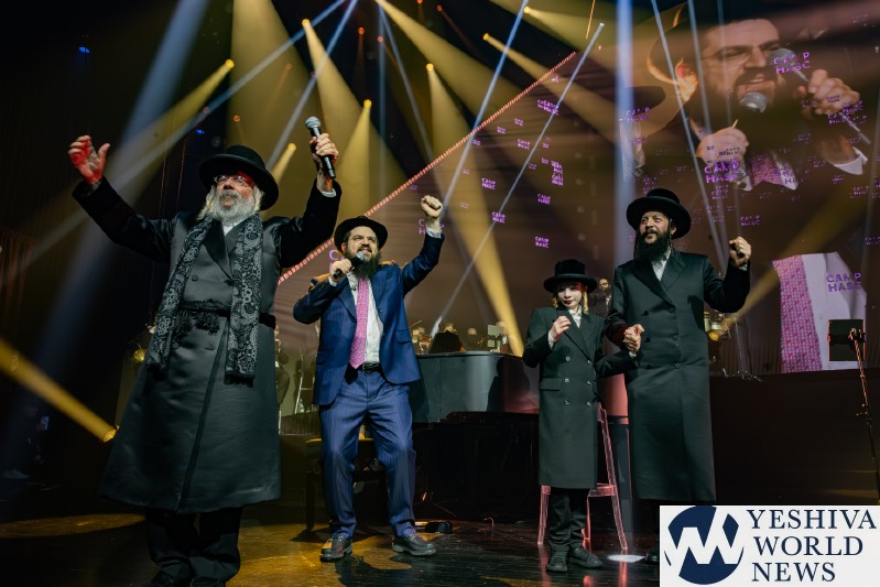 The choir broke into an acapella Yaamod. What was going on? It was beautiful, but why were they singing this here? When they were done, Nachum announced that the Nickelsburg Rebbe’s grandson, who is a camper at HASC, just celebrated his Bar Mitzvah. The Rebbe, his son, and grandson wanted to sing the Rebbe’s song on stage, his favorite. Joined by singer Benny Friedman, the four then performed Noach Was A Big Tzaddik. It was truly a special moment and the kedusha could be felt in the room.
