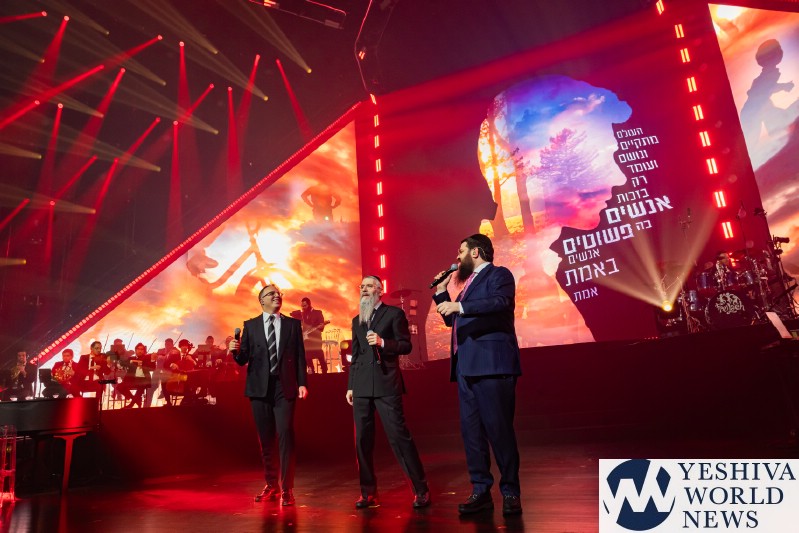 Galgalim was next. It is a song talking about how the world is sometimes crazy, like it’s going off its wheels, a great pop hit that the audience could really dance to. Shuli Rand was called back to the stage by Shwekey to perform his hit song Bein Kodesh Lchol. I saw this on the schedule and knew I couldn’t miss this. The song is world renowned and Shuli’s deep baritone voice really set aside along Yaakov’s higher notes. Yaakov’s set continued with welcoming Yonatan Razel back on stage to compose a song on the spot with lyrics by Shai Graucher, Vhei Sheomda with Razel and Fried, Hashem Hu Elokim with Fried and Benny and Pashut Anasim with Fried, Benny and Razel. Wow! The combinations and voices were unique. Finally it was time for the finale. What song would it be? It was Reb Bentzion Shenker’s A’H Hatoiv, which Yonatan Razel rearranged back in 2017. What an amazing way to close the show with a classic song reimagined by the entire cast.