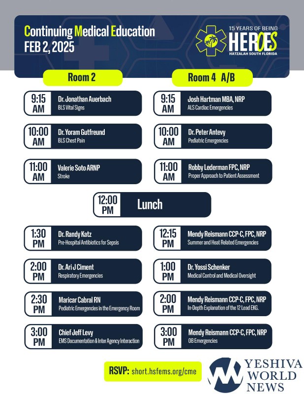 “Our relationship with Hatzalah South Florida exemplifies Memorial’s commitment to supporting excellence in Pre-Hospital care,” said Dr. Randy Katz, District Medical Director of Emergency Services, Memorial Healthcare System. “By hosting their CME conference, we’re not just providing a venue – we’re reinforcing our shared mission of delivering outstanding emergency medical care to our community. The synergy between Memorial’s emergency department and HSF’s rapid response capabilities has proven invaluable in saving lives.”