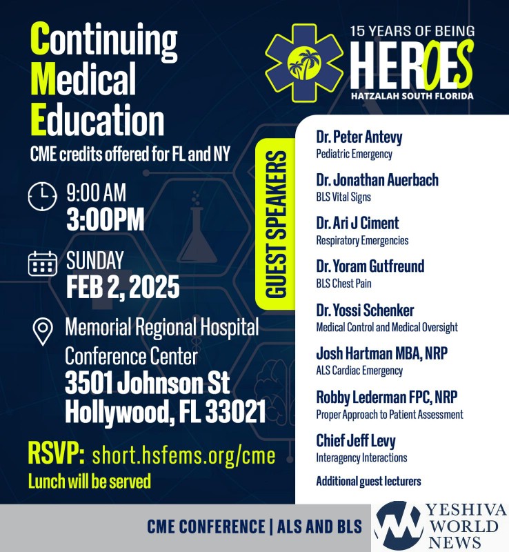 HOLLYWOOD, FL – Memorial Regional Hospital, South Florida’s largest hospital and Level I Trauma Center, deepened its vital partnership with Hatzalah South Florida (HSF) by hosting a landmark Continuing Medical Education (CME) conference today. This prestigious event underscores the longstanding collaboration between these two premier healthcare organizations, who work hand-in-hand to provide outstanding emergency medical care to the South Florida community.