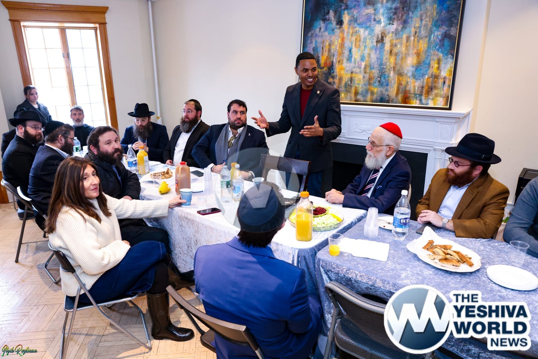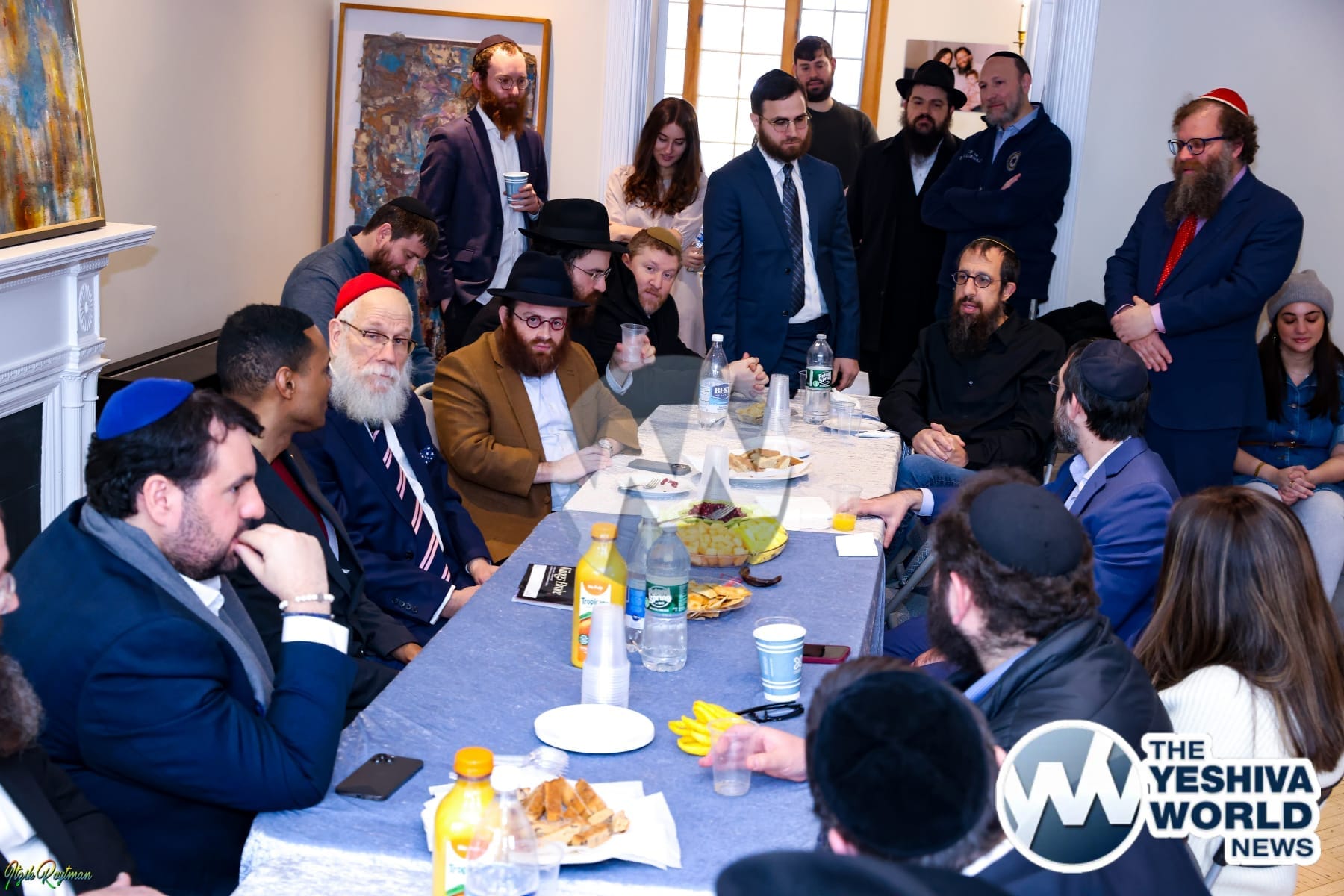 The breakfast was attended by prominent Jewish leaders, including Rabbi Shea Hecht, Chairman of NCFJE; Rabbi Mendy Kotlarsky, Executive Director of Merkos 302; Rabbi Mendy Hershkop, Chairman of Crown Heights Shomrim; JJ Katz of Crown Heights Hatzalah; Rabbi Lazar Avtzon of the Crown Heights Shul Association; activist Avi Leches; Rabbis Zalman Friedman and Shmuel Rosenstein of the Crown Heights Jewish Community Council; Rabbi Shalom Goldstein, Executive Director of Beth Rivkah; and Sam Stern, President of the Carroll Street Block Association.