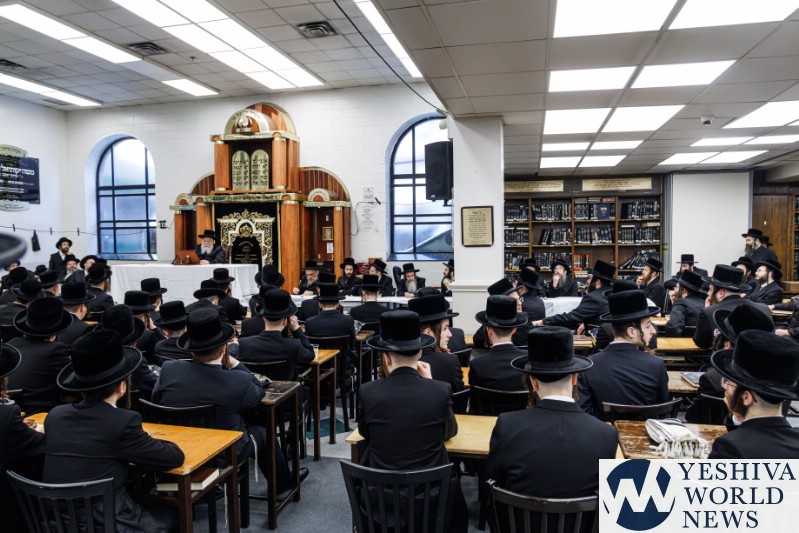 PHOTOS: The Bobover Rebbe Speaking For The Bochrim In The Bobover Mesivta