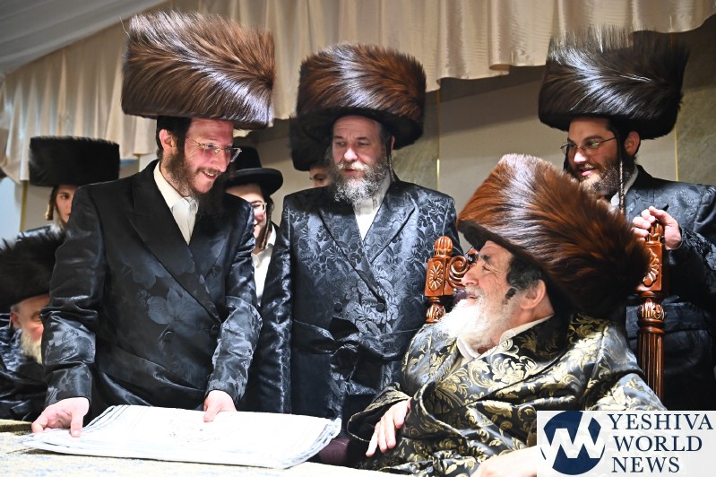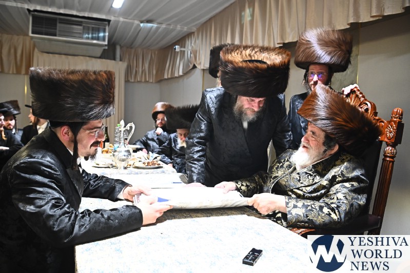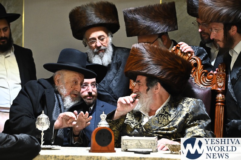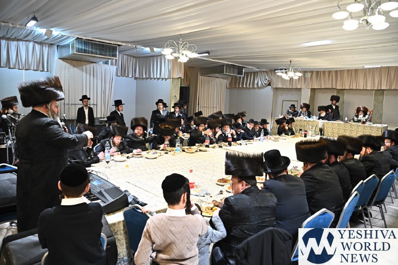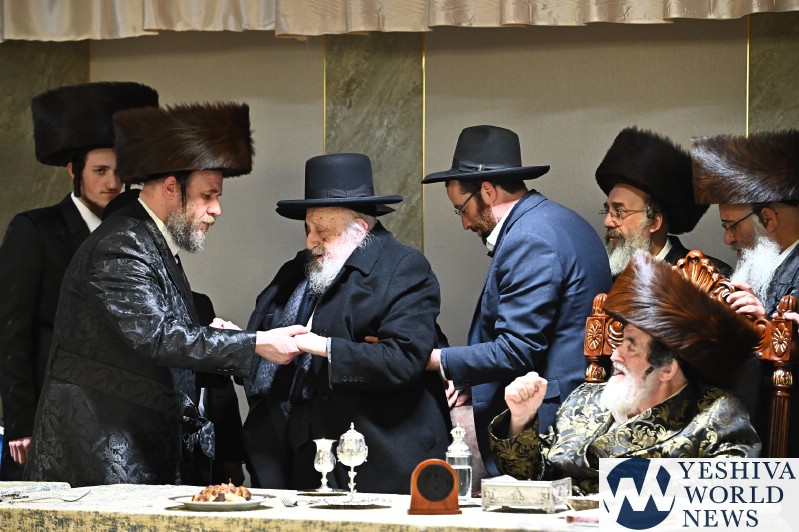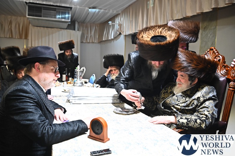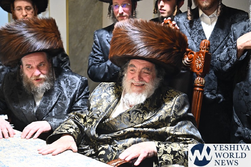 PHOTOS: The Vishnitzer Rebbe At Sheva Brachos Of An Einikle (Photos Via Shuki Lerer)