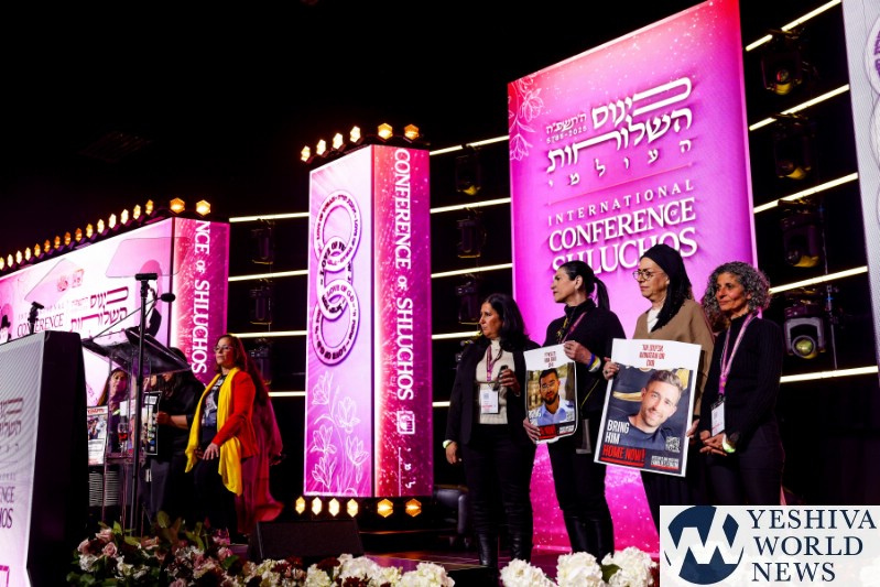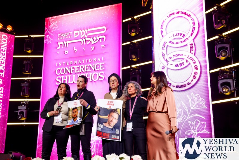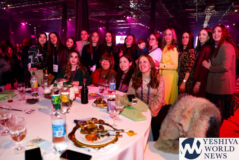 The evening’s program unfolded at the 150,000-square-foot New Jersey Convention and Expo Center, transformed for the evening into a beautiful banquet hall, and was streamed live on Chabad.org. As do all Jewish gatherings, it began with prayer, chapters of Psalms recited by Feigy Rapoport of Chabad of Mequon, Wis.; Lea Duchman of Chabad of the United Arab Emirates; and Michal Wexilshtein of Chabad of Hadera, Israel. Rapoport spoke of the power of women’s prayer, and Duchman represented the Jewish community of the UAE, where Chabad Rabbi Zvi Kogan was murdered late last year. Wexilshtein noted the presence in the great room of mothers of Jewish hostages being held captive by Hamas in Gaza, and requested all of the thousands of mothers, daughters, sisters and wives to pray in unison for the safe return of every kidnapped Jew to the embrace of their loved ones.