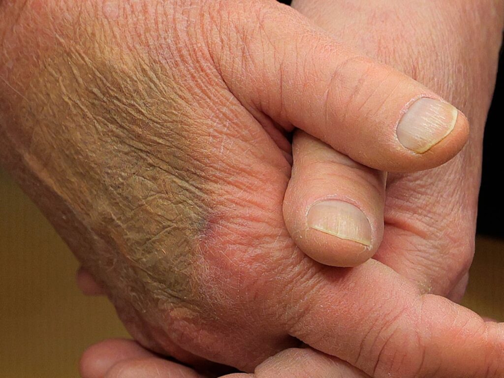 The bruise came into focus as the two leaders sat in the Oval Office, discussing critical issues like the ongoing war in Ukraine, which marked its third anniversary this week. Photos captured Trump, 78, with a prominent dark patch on the back of his hand, partially concealed by makeup but unmistakable under scrutiny. The timing couldn’t have been more conspicuous—moments earlier, Trump and Macron had engaged in one of their signature “death grip” handshakes, a 12-second clasp outside the White House that rekindled memories of their past physical showdowns.