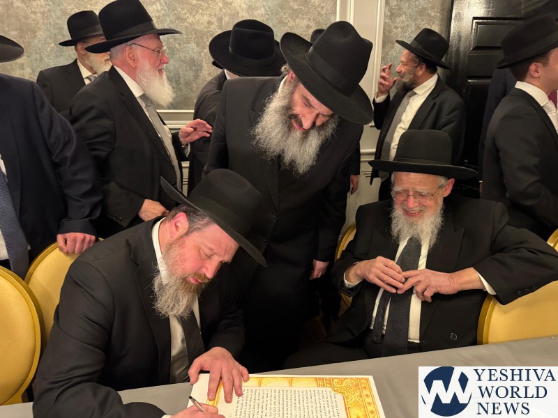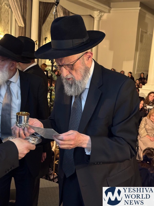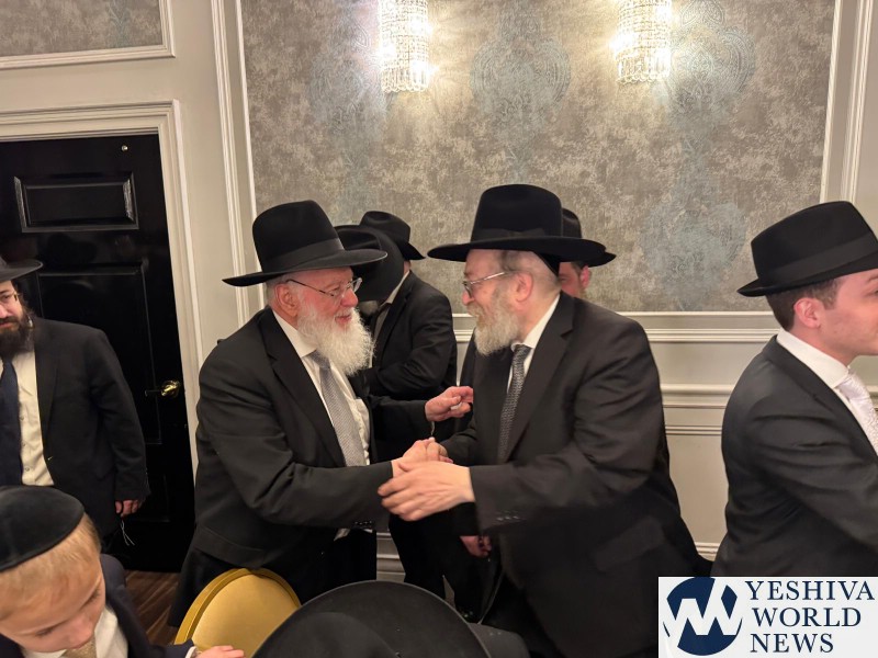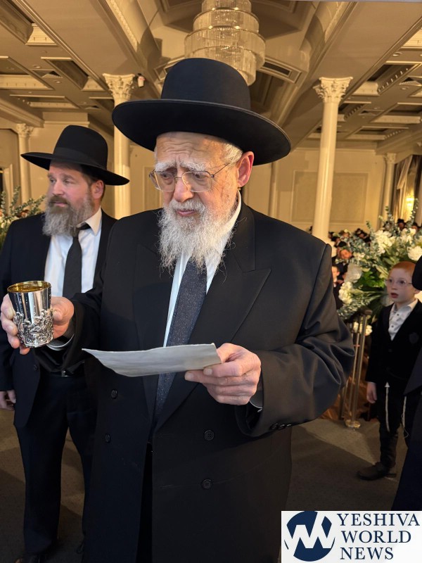 At the Chasunah on Wednesday night of Habochur Menachem Zev Stefansky (son of Reb Chaim) to Rina Vann (daughter of Reb Chaim) in Lakewood.