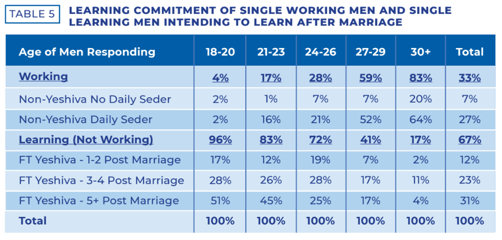 - Ages 18-20: 96% of bochurim are learning full-time.