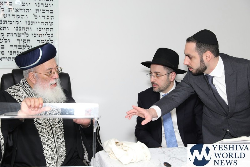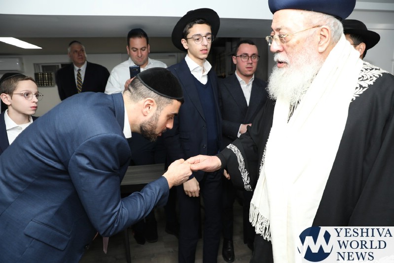 The former Sephardic Chief Rabbi of Israel, HaRav Shlomo Amar, visited the Lev America Torah Center in Flatbush. Photos via Avraham Elbaz-AEGedolimphotos.com
