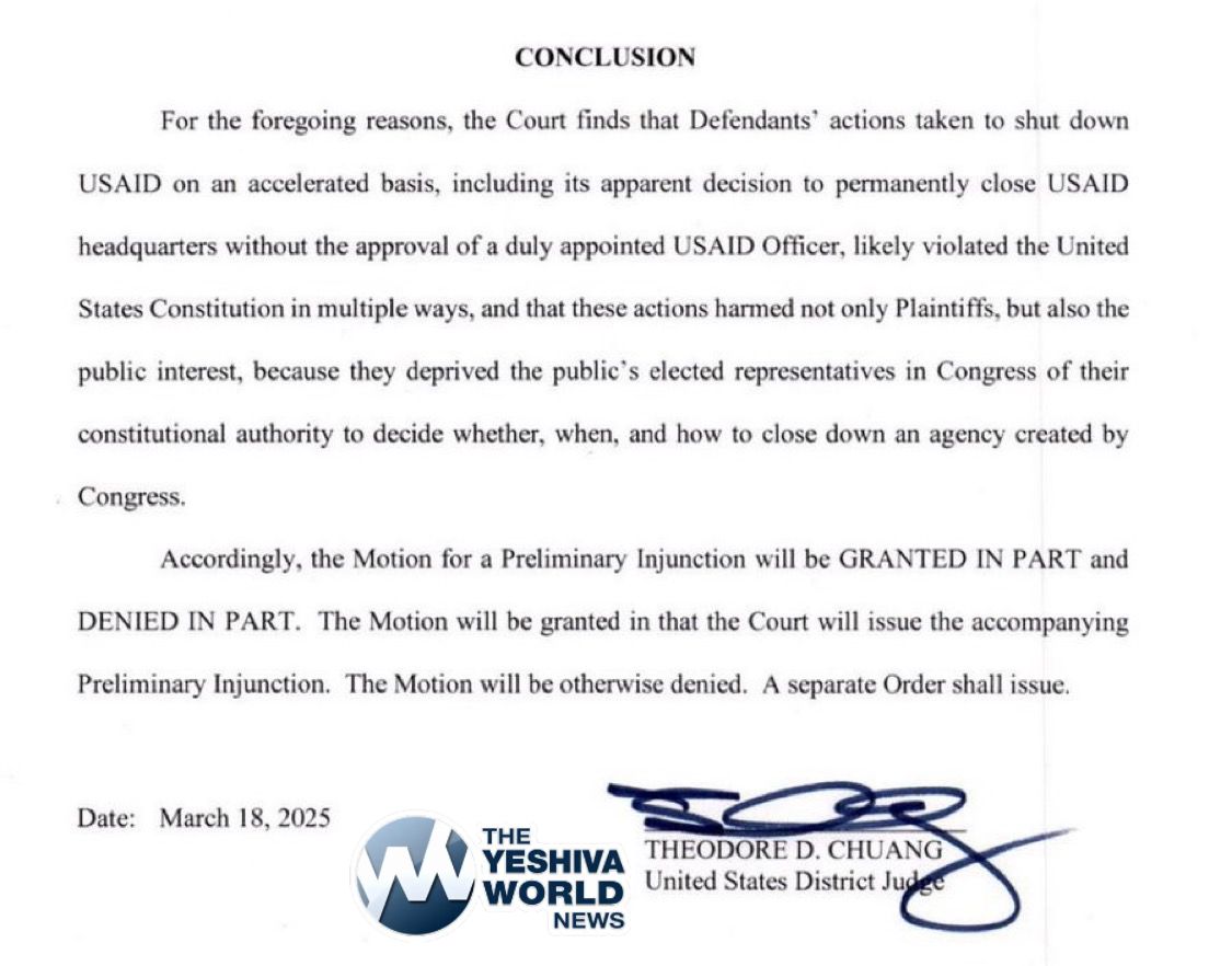 A federal judge orders Elon Musk and DOGE officials to reinstate basically all of USAID’s functionality, stating that DOGE’s efforts likely violated the Constitution in multiple ways.