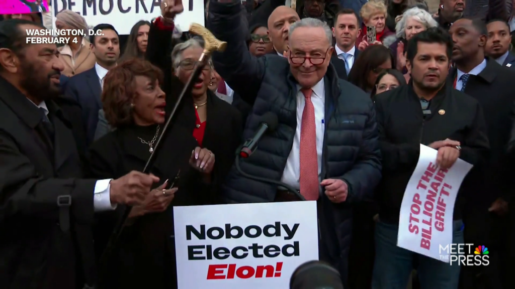“That was one day and one line,” Schumer said, brushing off claims that his opposition has been insufficient. “We are fighting in every way—in the courts, in oversight, in legislation, in organizing.”