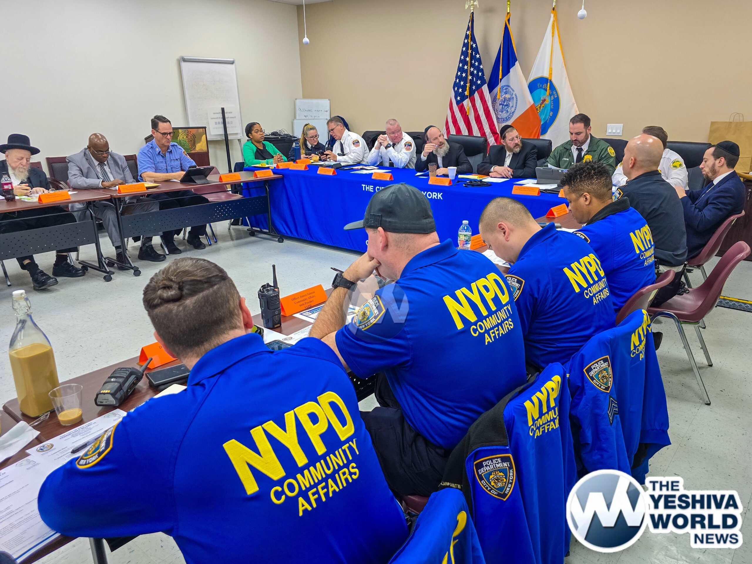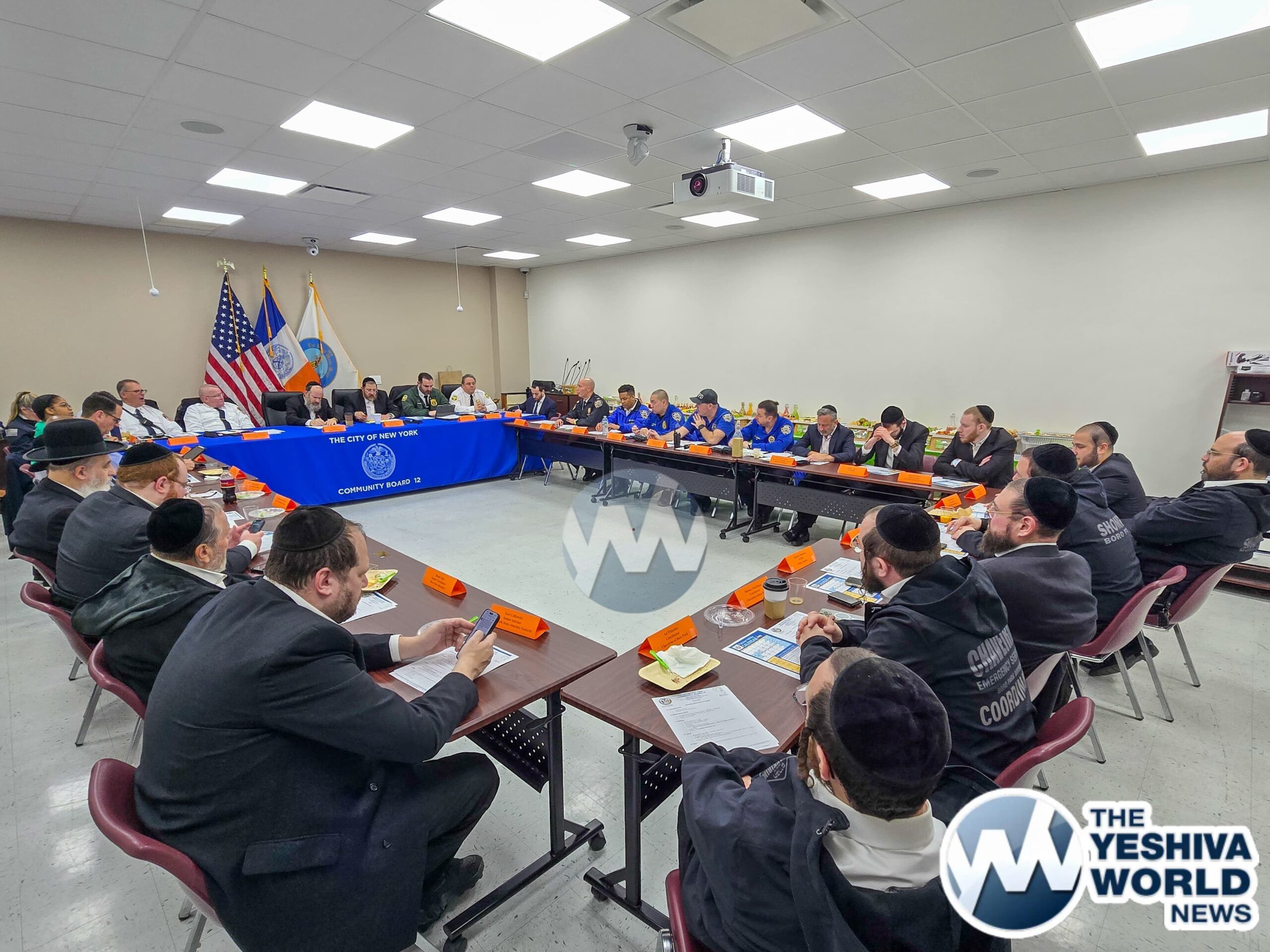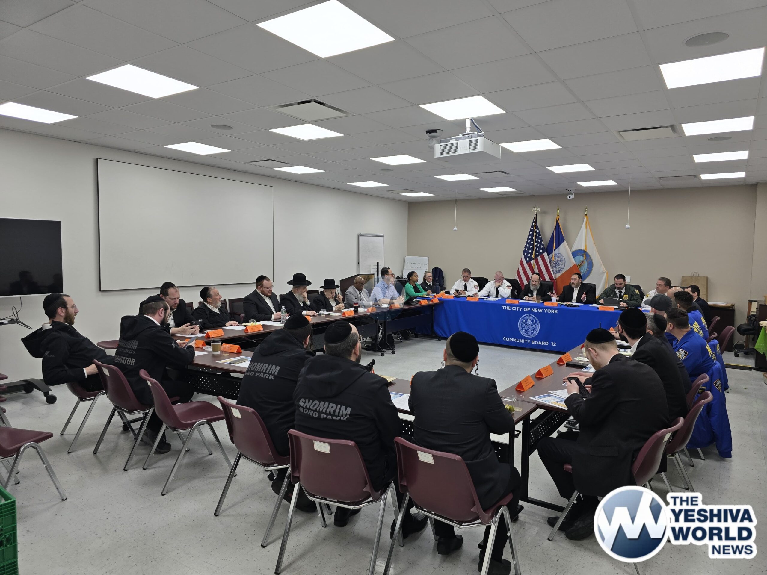 The meeting, spearheaded by Community Board 12 Chairman Yidel Perlstein and District Manager Barry Spitzer, brought together representatives from the NYPD’s 66th Precinct, FDNY, EMS, Sanitation Department, Department of Transportation, as well as leading volunteer organizations including Hatzolah, Shomrim, Chaverim, and Misaskim.