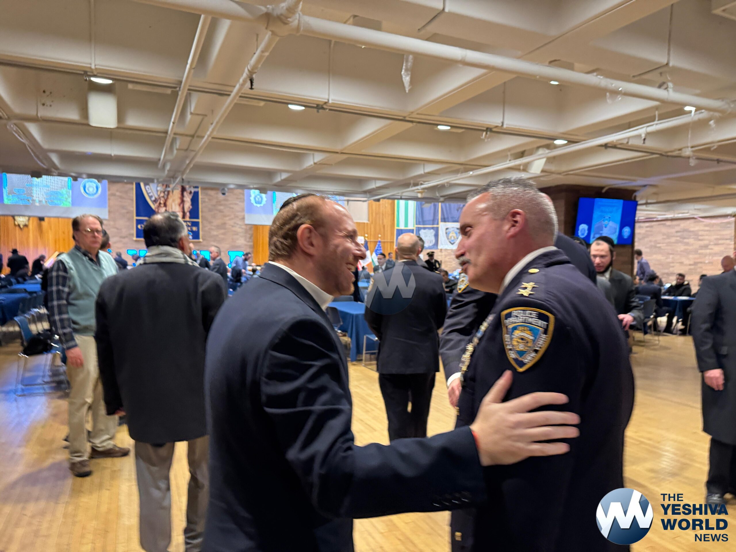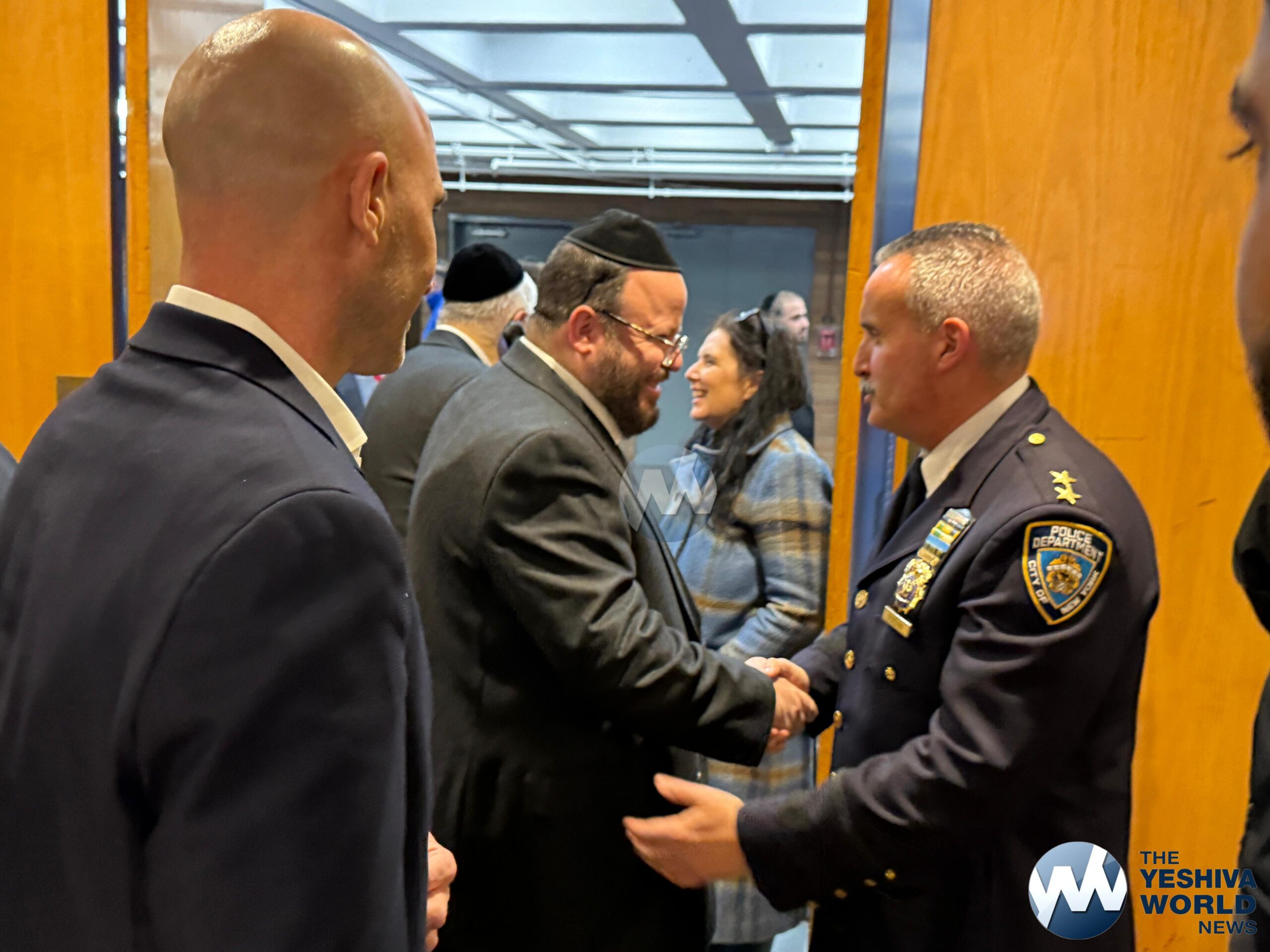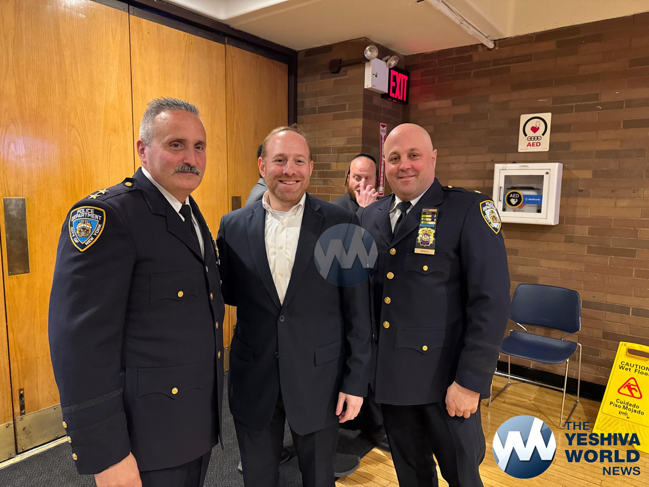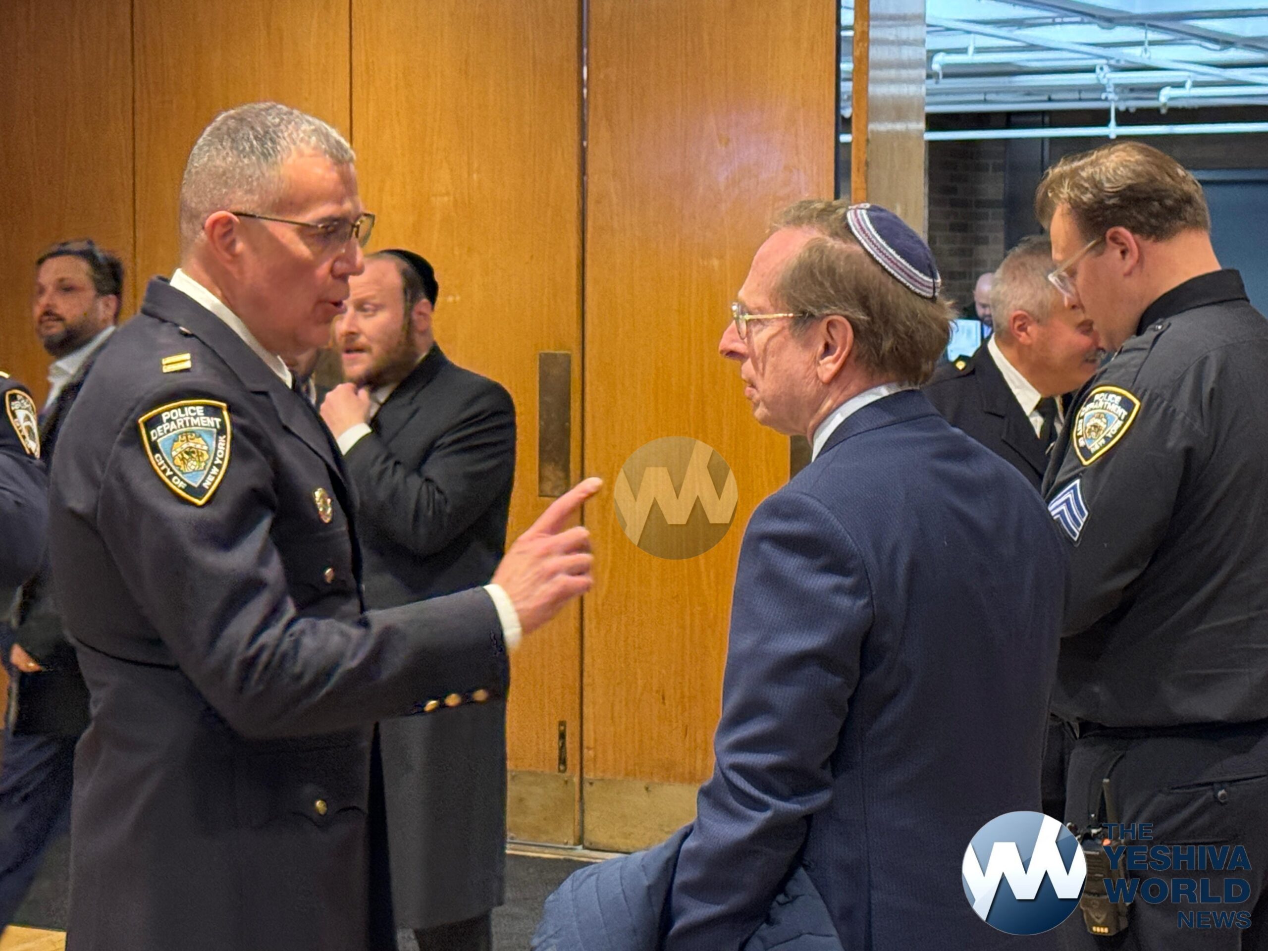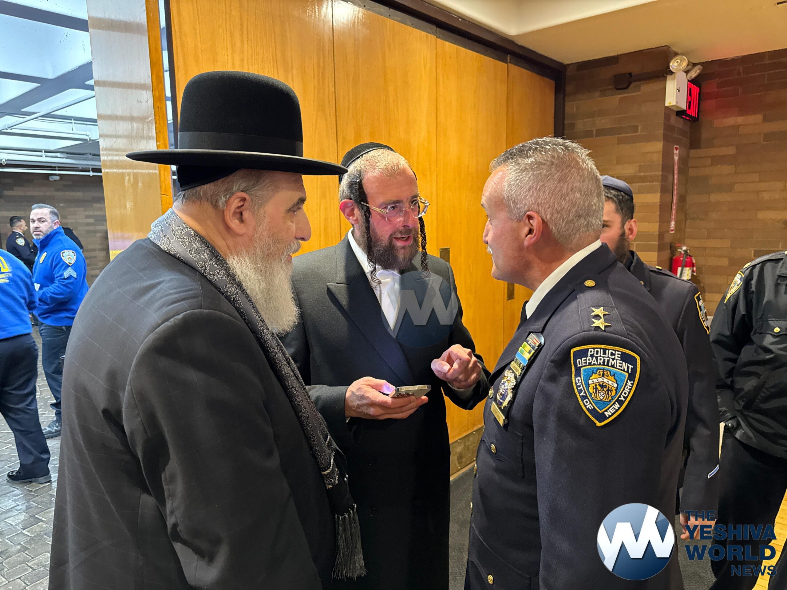Notable NYPD officials attending the briefing included Deputy Commissioner Mark Stewart, Deputy Commissioner of Legal Matters Michael Gerber, Chief of Detectives Joseph Kenny, Chief of Patrol Phil Rivera, Chief Surgeon Dr. Eli Kleinman, Chief of Housing Charles McEvoy, Chief of Brooklyn South Frank Giordano, Chief of Brooklyn North Scott Henderson & NYPD Clergy Liaisons Abe Friedman, Joel Eisdorfer, David Heskiel, Avrumi Brown, Rabbi Berish Freilich, Rabbi Edgar Gluck, Abe Rosenberg, Nachman Kletzky, Zishe Lax, Shneur Grossman & NYPD Honorary Surgeon Rafi Lilker.