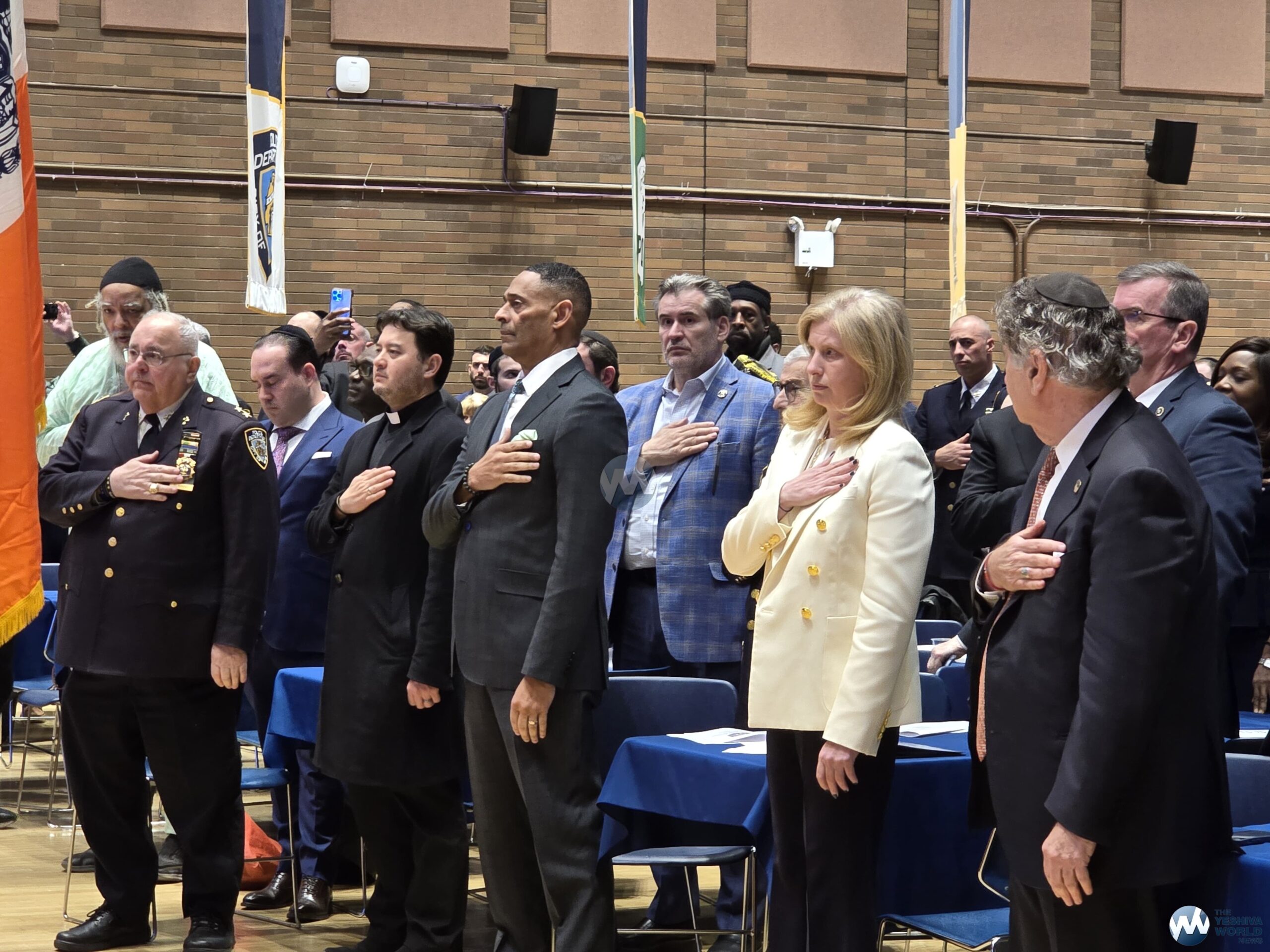The NYPD Honor Guard presented the colors after which World Renowned Cantor Nissim Saal beautifully sang the National Anthem for the crowd of over 400 people.