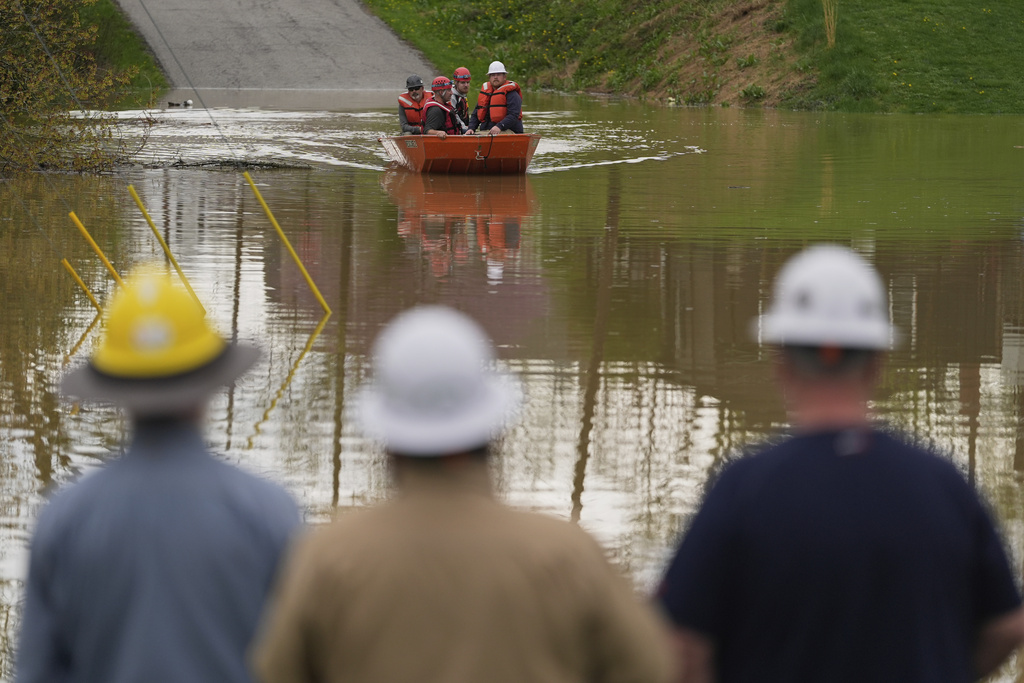 In north-central Kentucky, emergency officials ordered a mandatory evacuation for Falmouth, a town of 2,000 people in a bend of the rising Licking River. The warnings were similar to catastrophic flooding nearly 30 years ago when the river reached a record 50 feet (15 meters), resulting in five deaths and 1,000 homes destroyed.