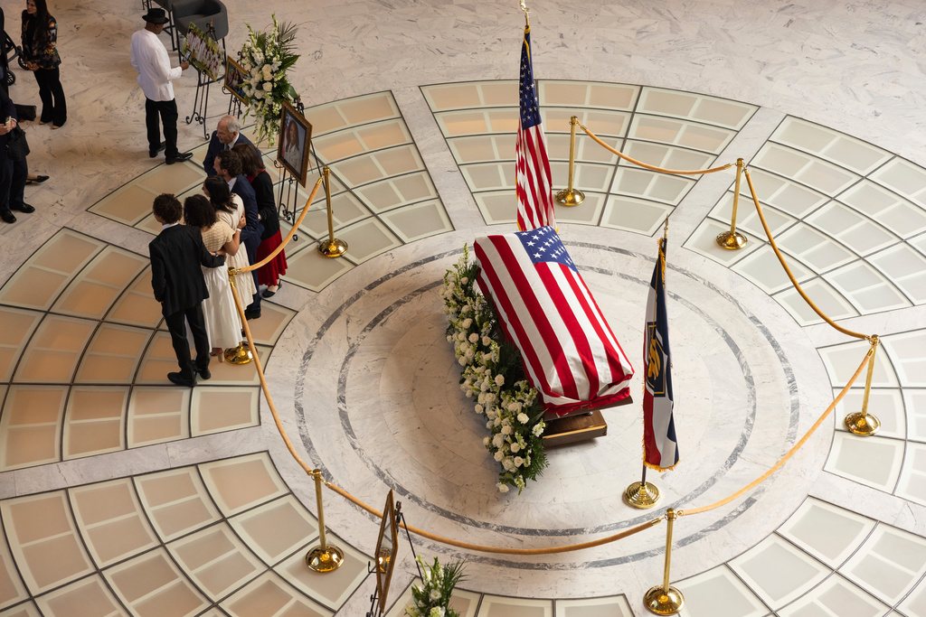 State lawmakers and members of the public visited the Utah Capitol on Sunday evening to pay their respects at Love’s flag-covered coffin behind ropes in the building’s rotunda.