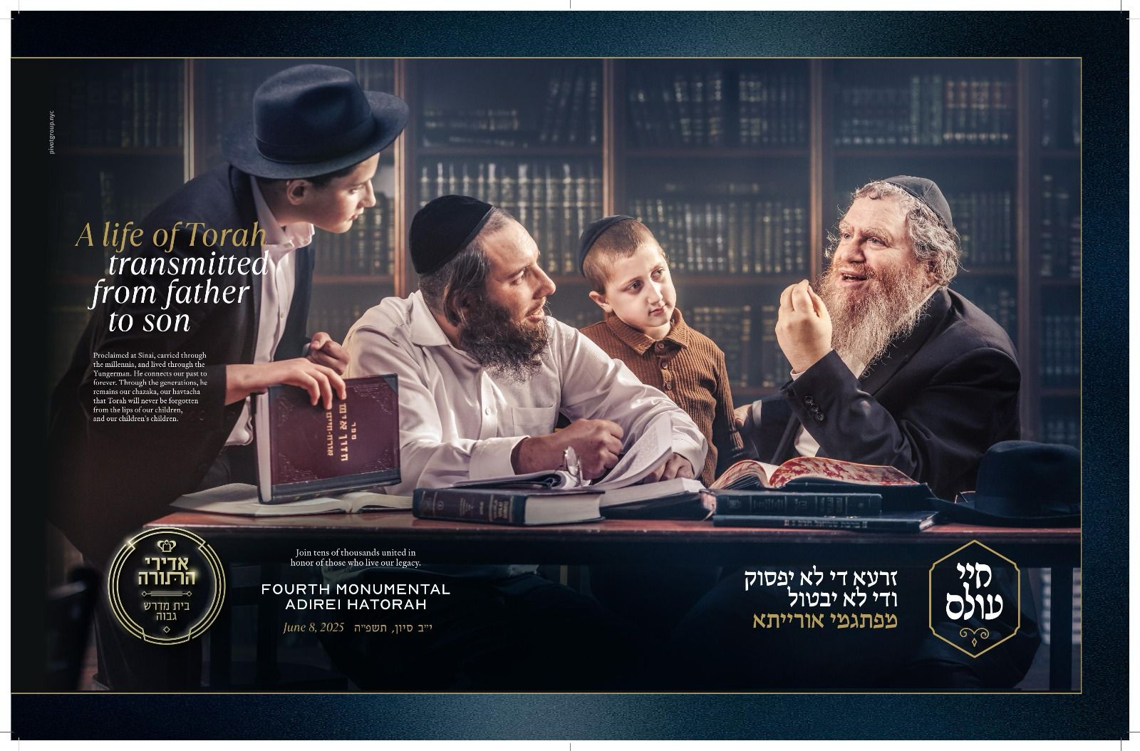Adirei HaTorah on Monday evening announced the upcoming Maamad Adirei HaTorah, the fourth in this extraordinary series of events celebrating the true kavod haTorah and the eternal mesorah passed from father to son.