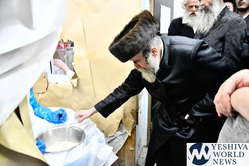 PHOTOS: The Toldos Aharon Rebbe Baking Matzos On Erev Pesach (Via Shuki Lerer)