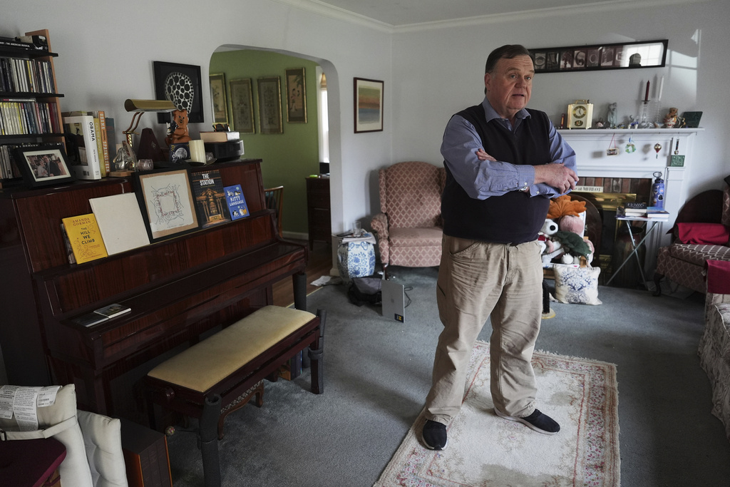 Michael Montgomery poses at his home in Huntington Woods, Mich., Friday, April 18, 2025. (AP Photo/Paul Sancya)