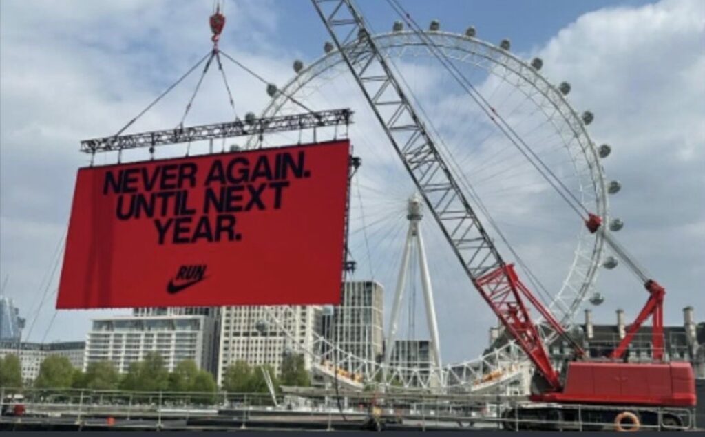 American sports giant Nike sparked global outrage this week after launching a post-London Marathon campaign using the slogan “Never again… until next year” — a crass play on words that invoked the phrase associated with never allowing the Holocaust to happen again.