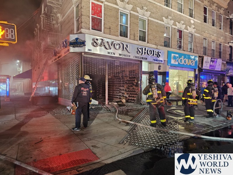 A massive fire erupted at Savon Shoes, located at the corner of 13th Avenue and 39th Street in Boro Park, early Monday morning, at 2:00 a.m. FDNY firefighters responded swiftly, but the blaze escalated quickly, with heavy smoke billowing from the store.